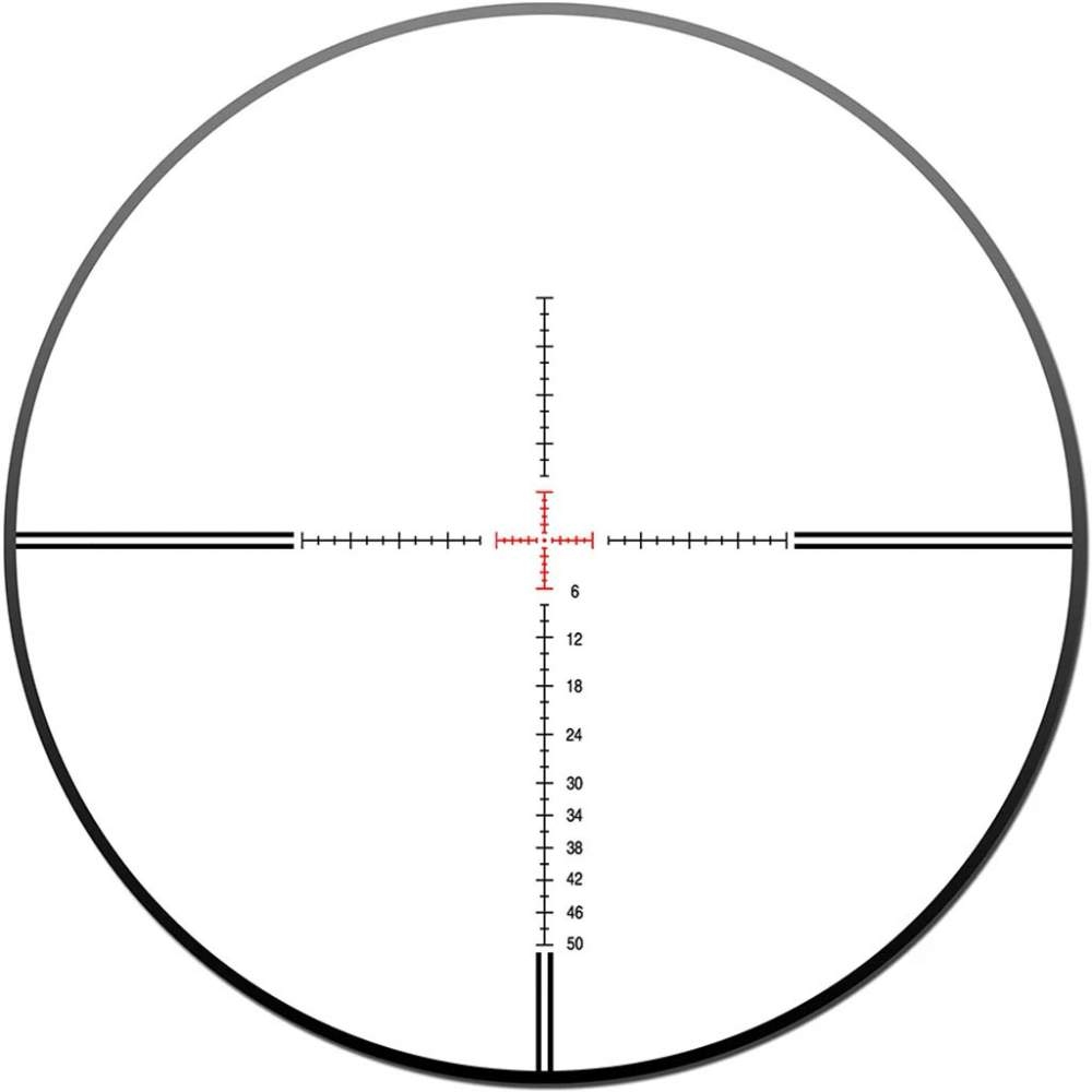 - Гравірована на лінзі тонка і зручна прицільна сітка на основі Mil-dot розташована в першій фокальній площині FFP (First Focal Plane). Оснащена підсвічуванням червоного кольору - підсвічується невелике центральне перехрестя (6 рівнів яскравості).