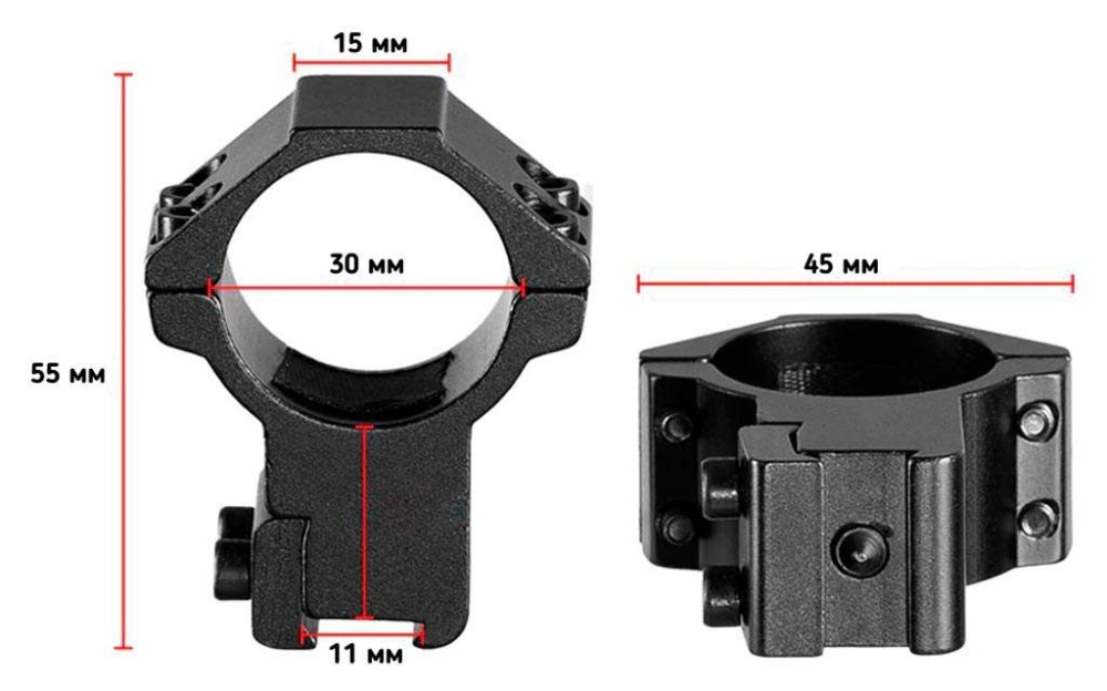Виготовлені з алюмінієвого сплаву з анодованим покриттям, яке перешкоджає утворенню відблисків. На внутрішній поверхні кілець нанесена синтетична стрічка, яка покликана запобігти пошкодженню та ковзанню прицілу.