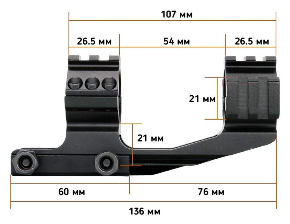 Можливе встановлення прицілів із зовнішнім діаметром об'єктива до 66 мм.