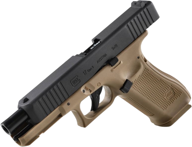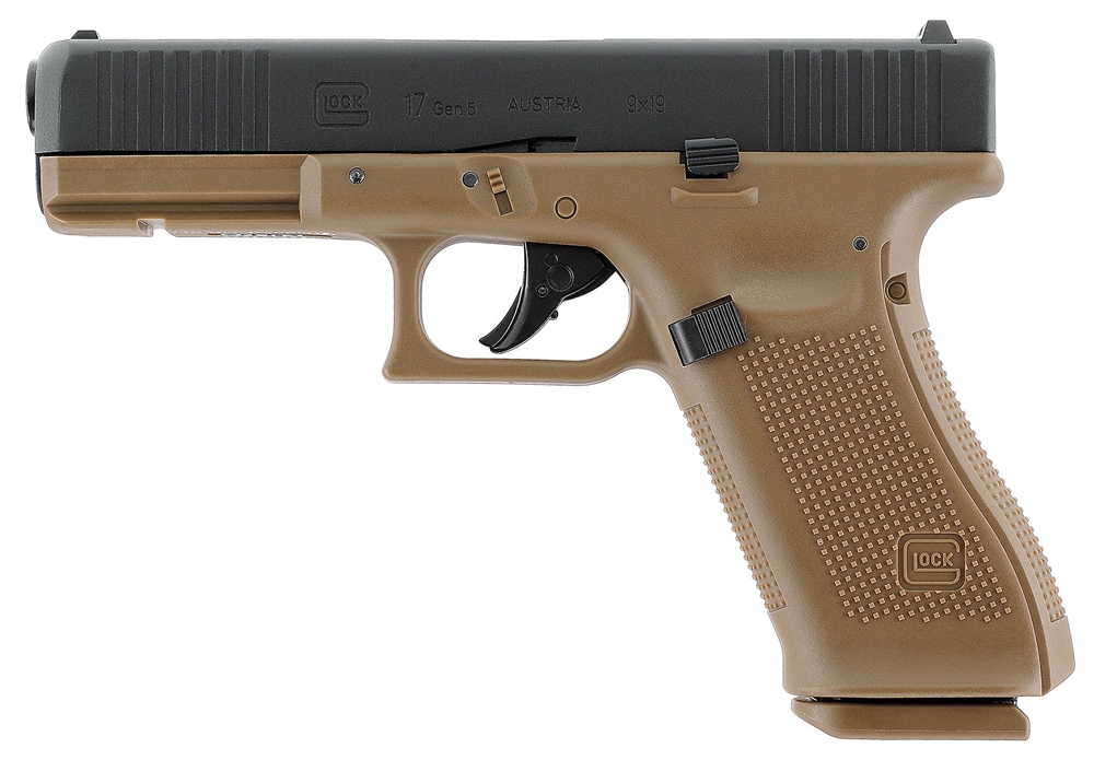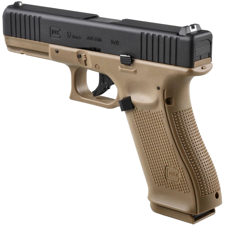 В цій моделі пістолета Glock 17 Gen5 від Umarex рамка виконана у кольорі койот. Також пістолет оснащений системою імітації руху затвора та віддачі Blowback, яка надає реалістичності при стрільбі. Як боєприпас в даній версії застосовано кульки ВВ калібру 4,5 мм. Ємність магазина - 18 кульок.