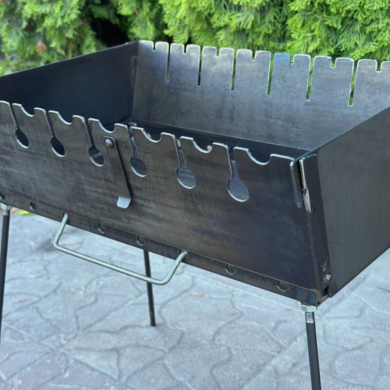 Наш мангал відрізняється портативністю та компактністю. Він легко складається в валізку, що робить його ідеальним супутником для пікніків, відпочинку на пляжі та інших пригод на свіжому повітрі.