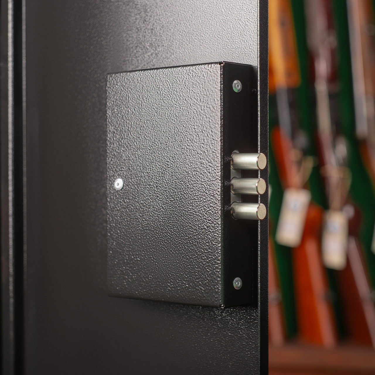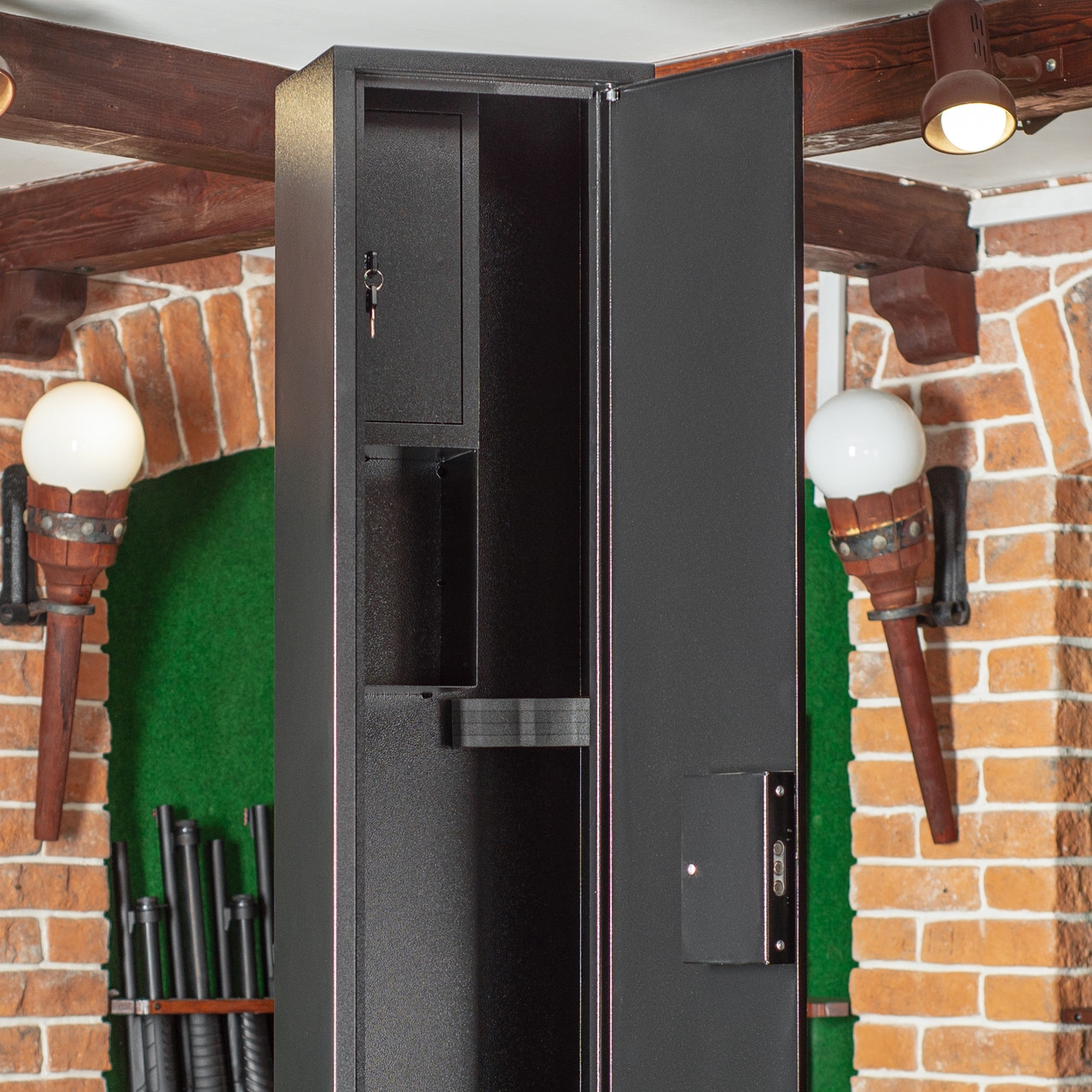 Відповідає вимогам дозвільної системи: замок сувальдного типу, передбачено можливість кріплення до підлоги, обладнаний відсіком для зберігання патронів.