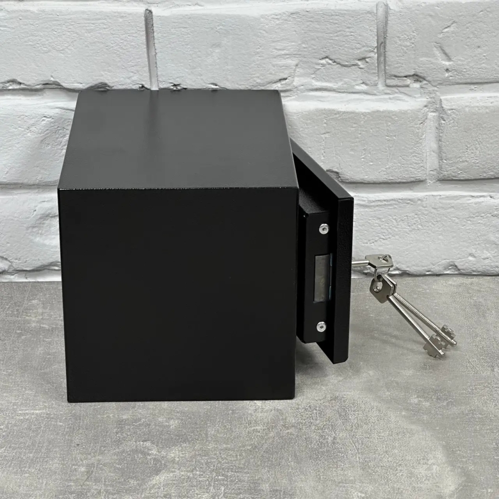 Меблевий (пістолетний) сейф пофарбований порошковою фарбою (t запікання 180°C — що надає йому приємного вигляду та оберігає від корозії.