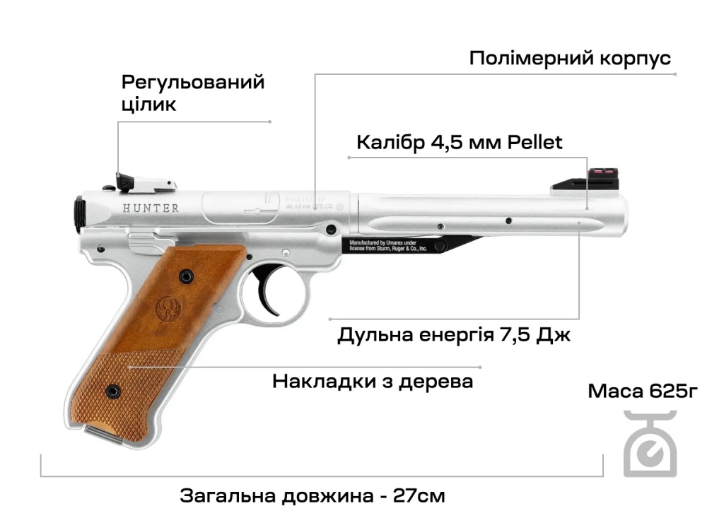 Відмінна ціна Umarex Ruger Mark IV Stainless, 4,5 мм у нашому інтернет-магазині обумовлена тим, що ми працюємо безпосередньо з постачальниками та відомими брендами зброї, які офіційно представлені в Україні. Ми забезпечуємо найшвидшу доставку та даємо реальну гарантію на представлений асортимент дозволеної зброї та спортивних товарів.