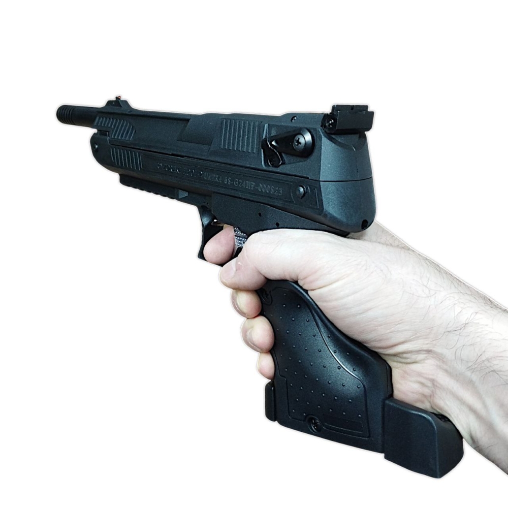 Ще одним незаперечним плюсом є відсутність віддачі, тому пістолет може вільно доукомплектовуватись прицілом та різними аксесуарами. Спуск регулюється по довжині та зусиллю, що дозволяє якнайкраще налаштувати пістолет під стрілка.