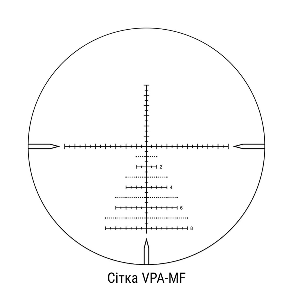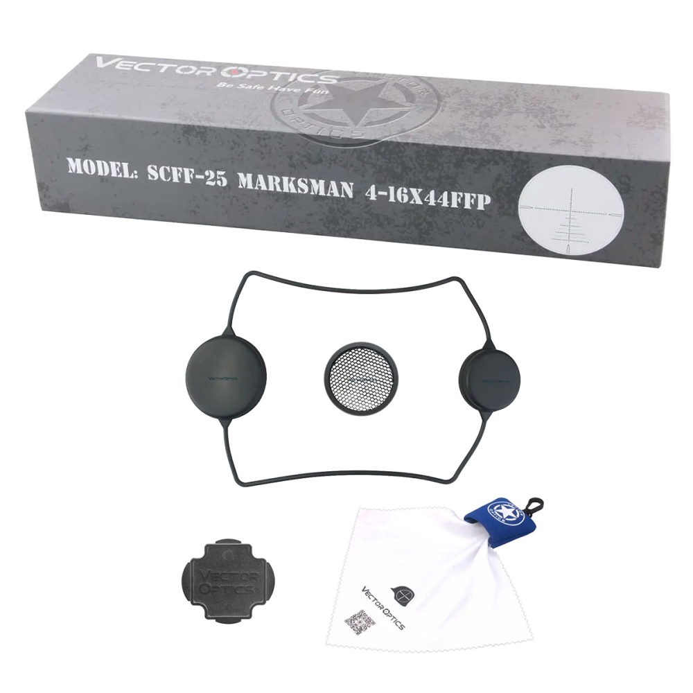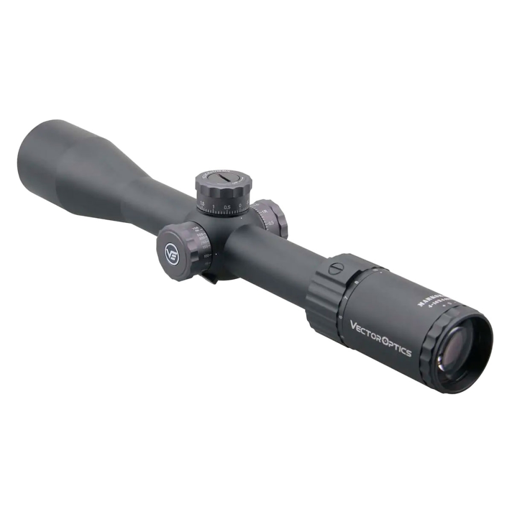 Vector Optics Marksman 4-16x44 FFP – це універсальний оптичний приціл, розроблений для стрільби на середні та дальні дистанції. Оснащений прицільною сіткою VPA-MF у першій фокальній площині, яка масштабується разом із збільшенням, що спрощує введення поправок.