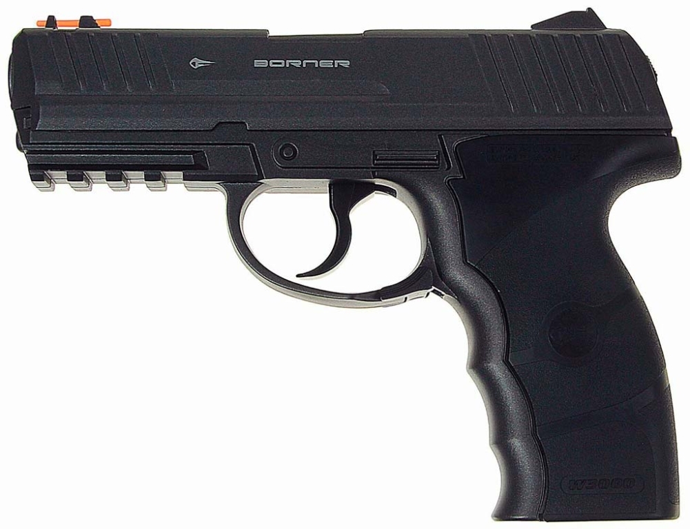Корпус пістолета – металевий сплав, затвор виготовляється з металу. Рукоятка пістолета має насадку з гумоподібного пластику з шорсткою поверхнею для більш тісного контакту з рукою власника. Зручність користування посилена формою рукоятки, пістолет у руці зовсім не ковзає. Передня частина Borner W3000M – місце розташування невеликих підпальцевих виїмок. При зсуві накладки з ручки назад відкривається резервуар, куди встановлюється газовий балон із CO2. У цьому бюджетному пістолеті не передбачена рухливість затвора, але рамка затвора знімається і відкриває доступ до внутрішніх елементів. У верхній частині затвора розташовані цілік і мушка, що є прицільними пристроями. На них є вставки зі світловідбивних ниток. Це дуже зручно за умов поганої видимості.