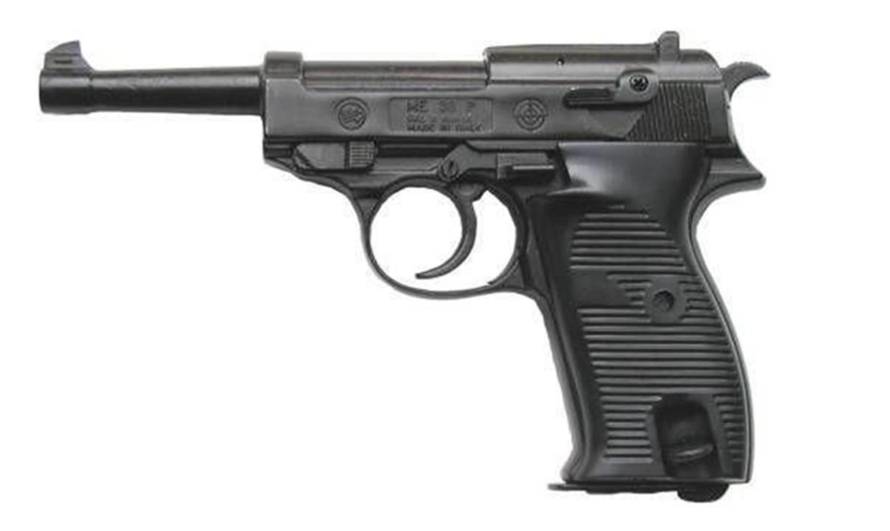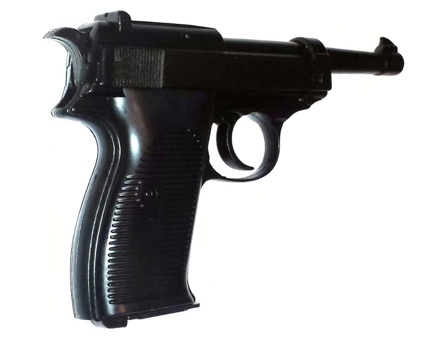 Сигнальний пістолет Bruni 38P калібру 8 мм – точна репліка легендарного Walther P38, призначена для стрілянини холостими патронами. Затвор і рама виконані з цинкового сплаву, що надає пістолету вагу максимально наближену до оригіналу, а накладки на рукоятку виготовлені з пластику. Ударно-спусковий механізм одинарної дії (Single Action) забезпечує постріл після зведення курка рухом затвора. Для безпеки передбачено ручний запобіжник.