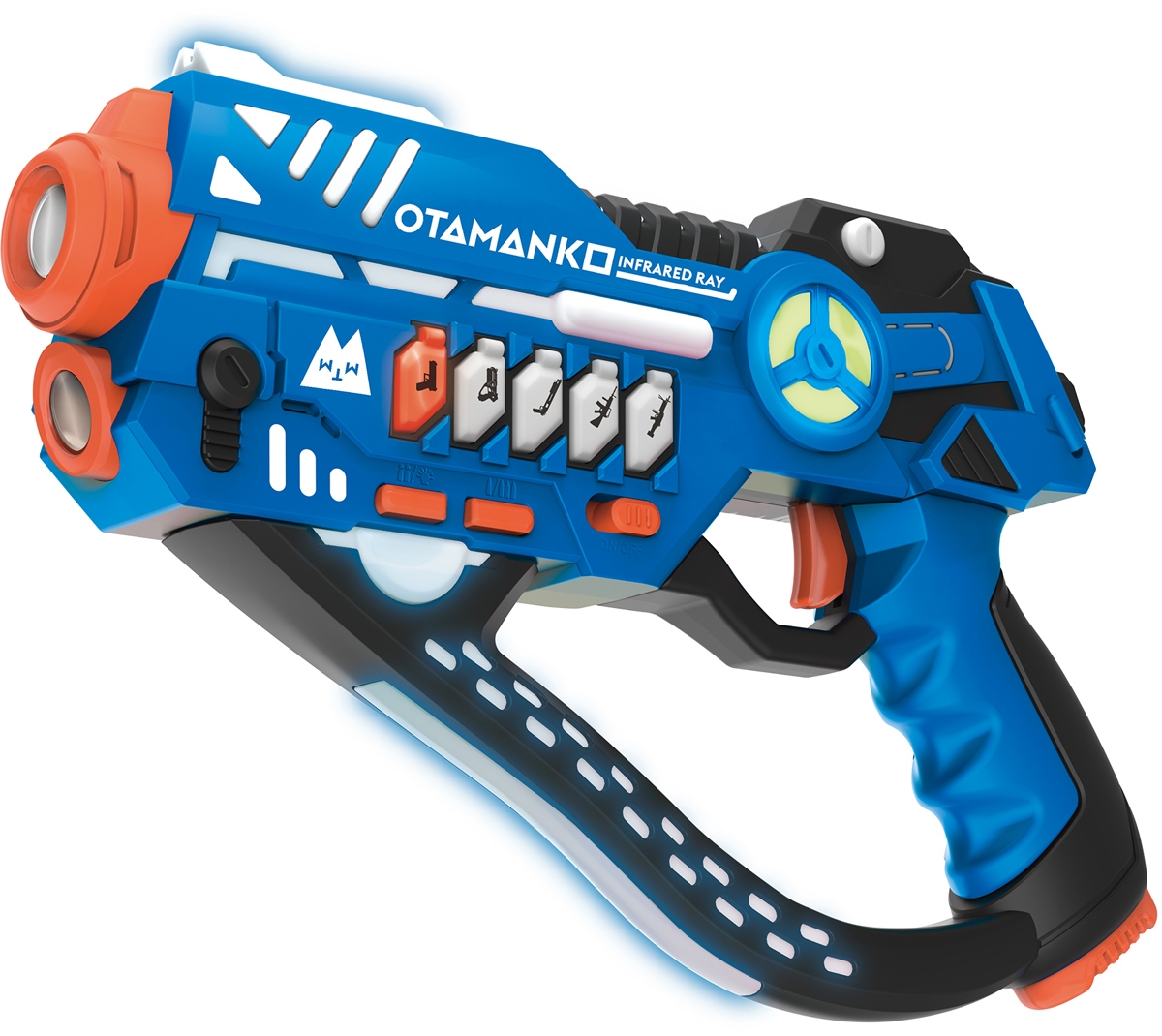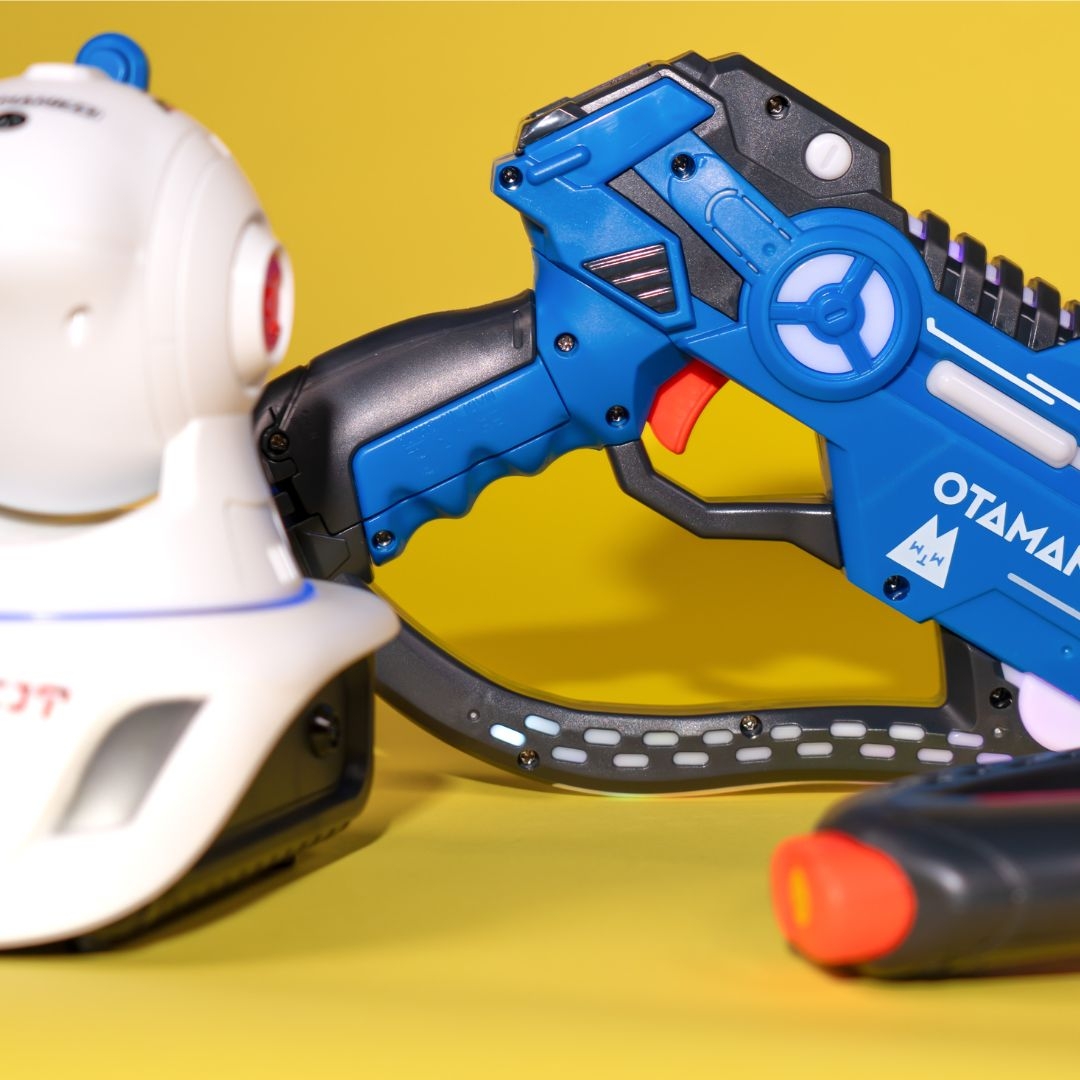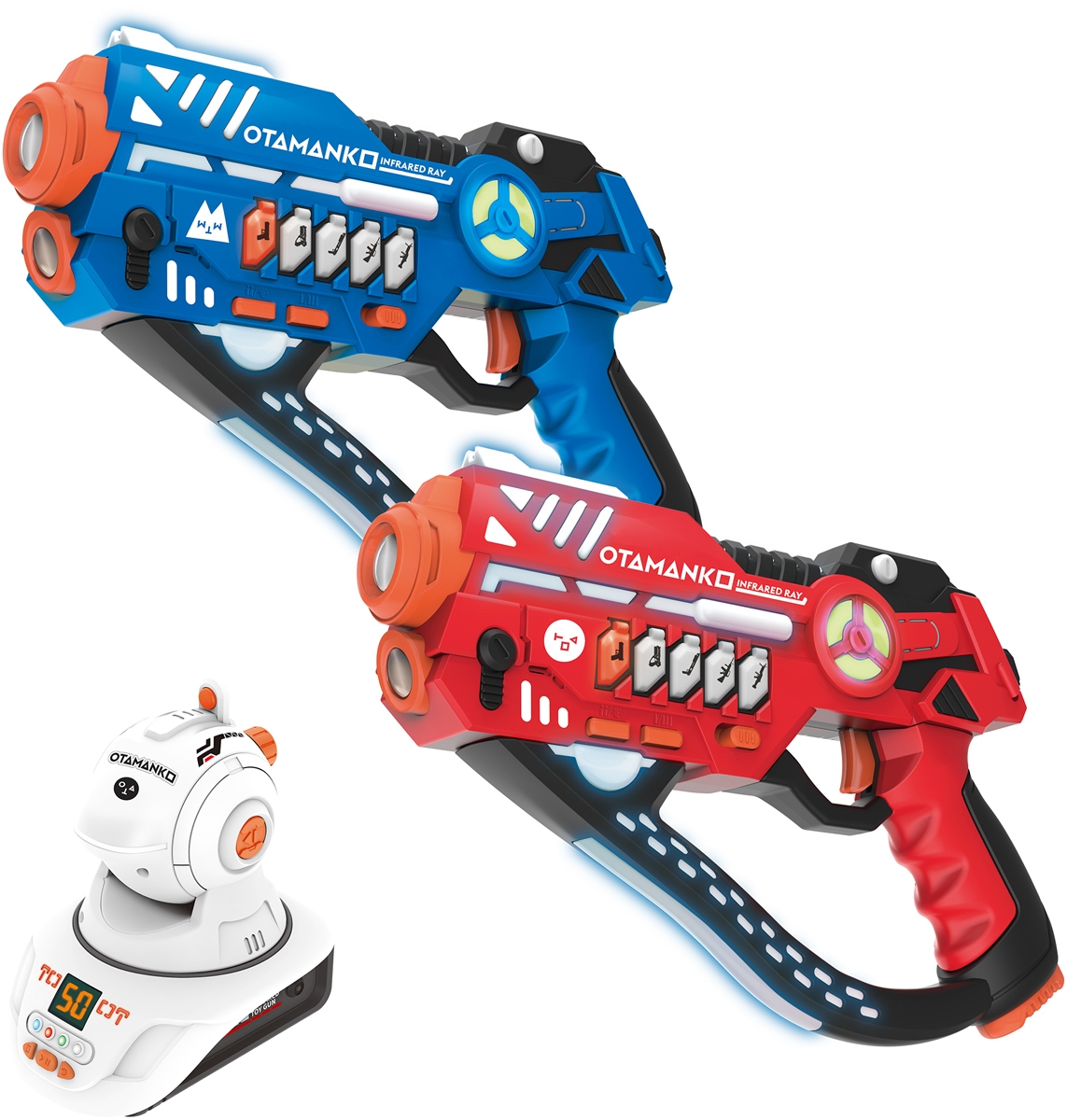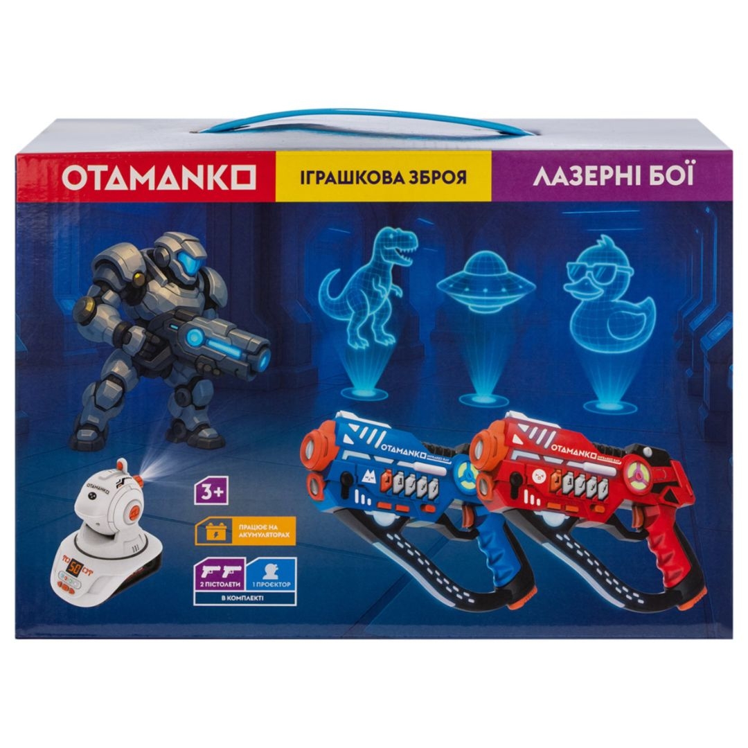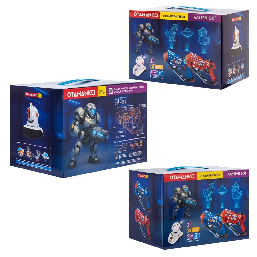 Привіт, друзі! Отаманчик представляє ще цікавішу версію — набір «ЛАЗЕРНІ БОЇ» ТМ OTAMANKO з проектором! У комплекті два пістолети та проектор із трьома картками, які створюють мішені: літаючу тарілку, динозавра або качку. Зброя працює на інфрачервоне випромінювання, має реалістичні світлові та звукові ефекти і дозволяє імітувати 5 типів пострілів — від пістолета до кулемета. Можна тренуватися самостійно, відпрацьовуючи точність, або грати командами до 4 учасників. Це справжні лазерні пригоди, що поєднують фантазію, азарт і командний дух!
