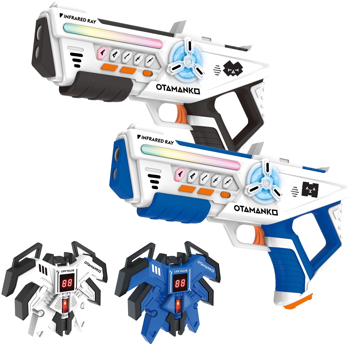 Зброя працює на акумуляторах, стрільба здійснюється інфрачервоним променем, є реалістичні світлові та звукові ефекти, можна обирати 5 видів стрільби (пістолет, лазерний пістолет, дробовик, автомат, кулемет), підтримується командна гра до 4 учасників.