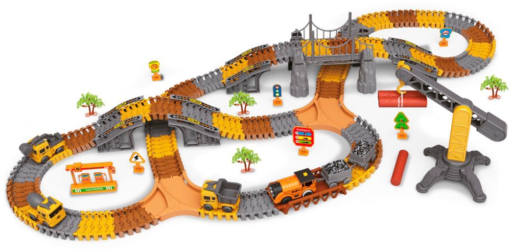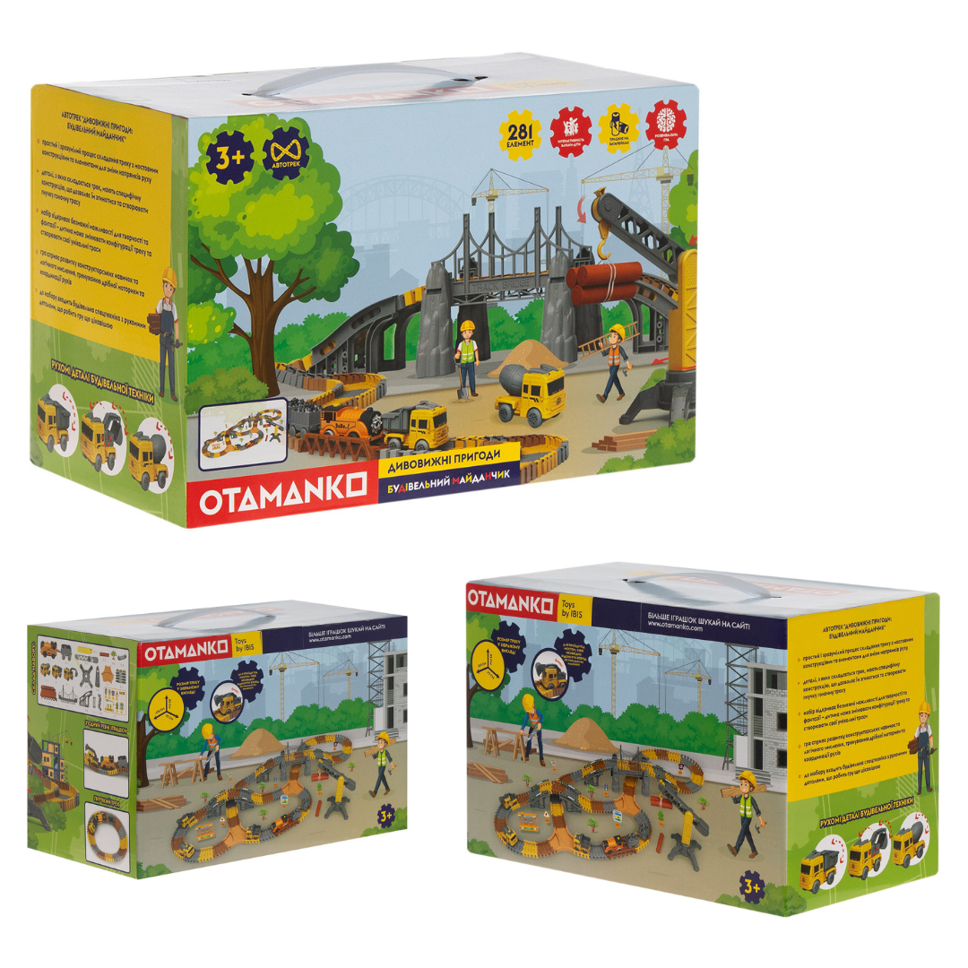 Долучайтеся до великого будівництва разом з OTAMANKO! Інтерактивний гнучкий трек зі спусками, підйомами та мостами перетворюється на справжній майданчик для техніки. Маленькі інженери зможуть створювати власні маршрути серед перешкод та будівельних механізмів. У наборі — тематичні фігурки, будівельна техніка та дорожні знаки. Гра розвиває логіку, уяву та інтерес до техніки.