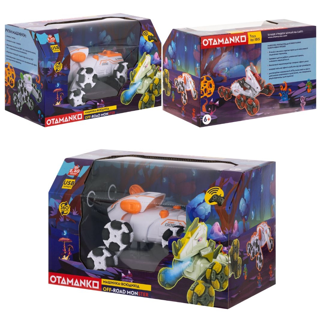 OFF-ROAD MONSTER — потужний трюковий всюдихід, який долає будь-які перешкоди! 8 масивних коліс, змінювана конфігурація та можливість трансформації у вертикальне положення або арку забезпечують максимальну свободу для трюків. Парогенератор створює ефект диму, а яскраві світлові ефекти роблять кожен заїзд видовищним. Машинка обертається на 360° у горизонтальній та вертикальній площині, рухається у всіх напрямках, розвиває швидкість до 12 км/год і керується на відстані до 25 м. OFF-ROAD MONSTER подарує до 20 хвилин справжнього екстрим-драйву!