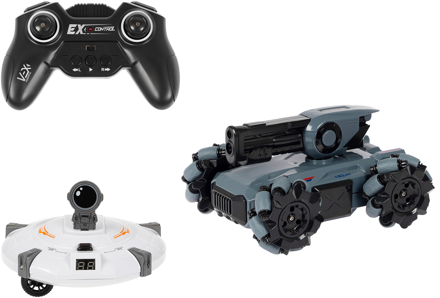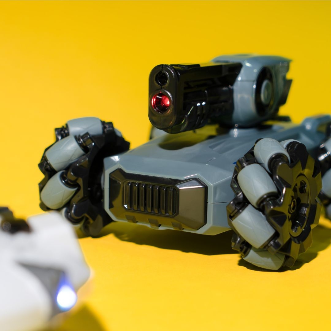 Готуйтеся до міжгалактичної битви з танком SPACE BATTLE! Він стріляє інфрачервоними променями по мішені НЛО, яка автоматично відновлюється та показує кількість попадань на дисплеї. Танк оснащений дрифт-колесами, обертається на місці на 360°, рухається вперед/назад та виконує дрифт-маневри вліво/вправо. Яскраві світлові та звукові ефекти роблять гру ще цікавішою. Швидкість до 12 км/год, дальність стрільби — 3 м, дистанція керування — до 30 м, а тривалість гри — до 15 хвилин справжнього екшену!