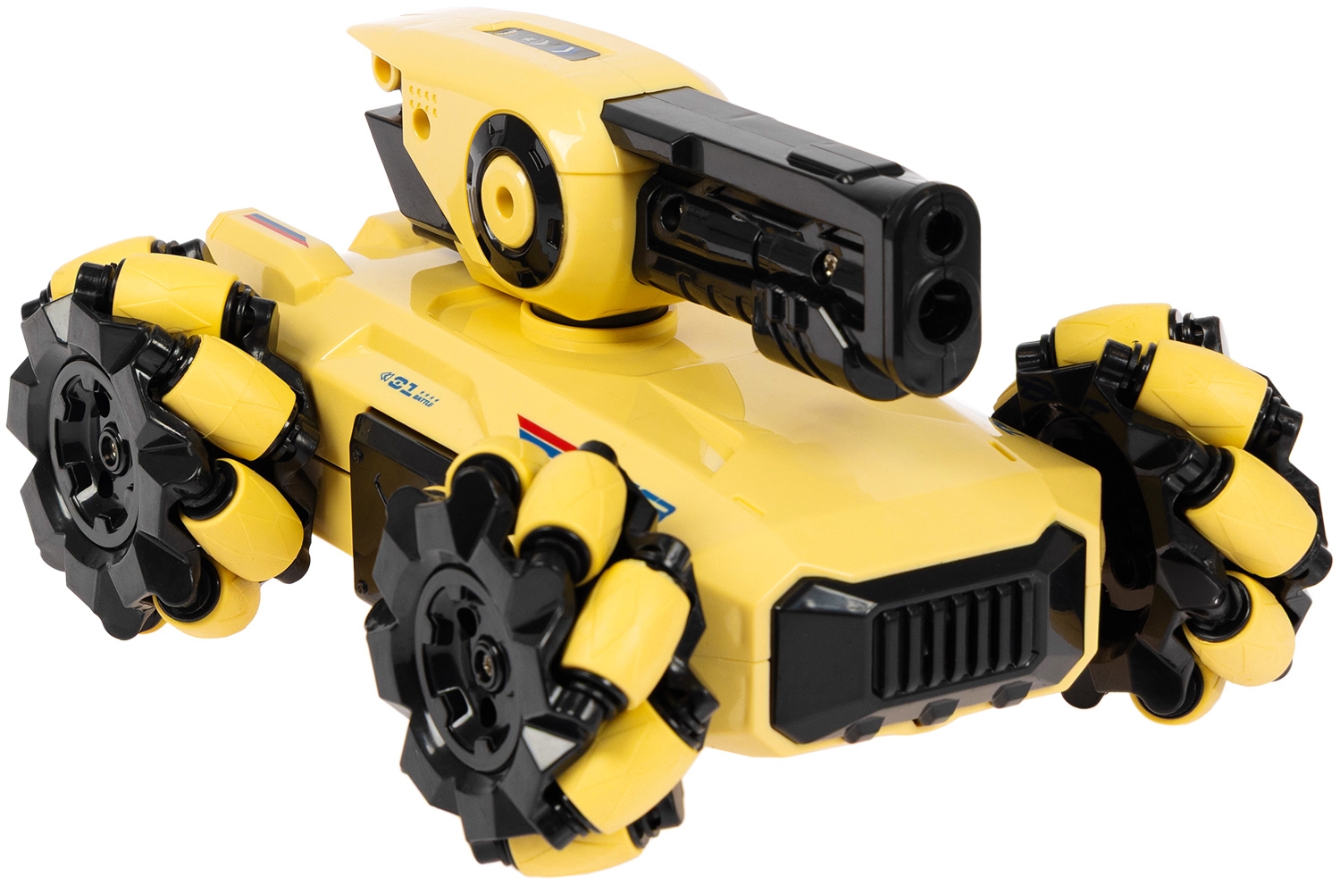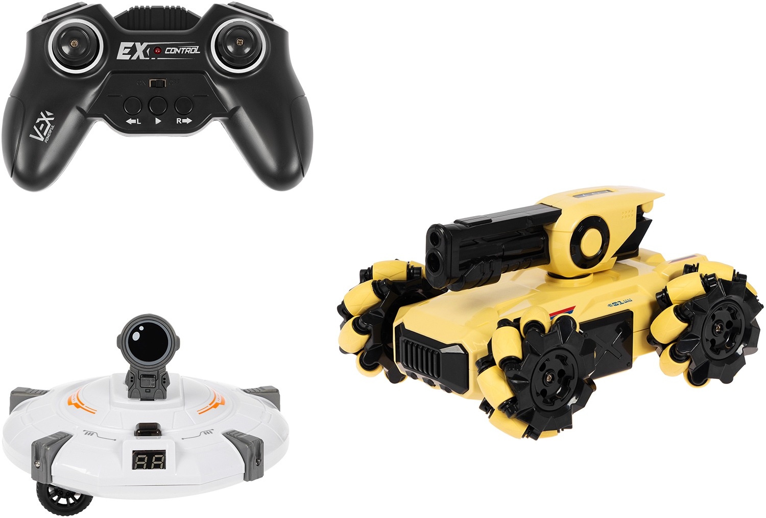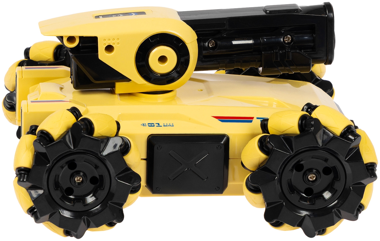 Готуйтеся до міжгалактичної битви з танком SPACE BATTLE! Цей герой бореться з прибульцями, стріляючи інфрачервоними променями по мішені НЛО. Мішень оснащена дисплеєм для підрахунку попадань і самостійно відновлюється після пострілу. Танк обертається на місці на 360°, рухається вперед/назад, повертає вліво/вправо та виконує дрифт-маневри. Яскраві світлові та звукові ефекти роблять гру ще цікавішою. Швидкість до 12 км/год, дальність стрільби — 3 м, управління — до 30 м, а тривалість гри — до 15 хвилин справжнього екшену!