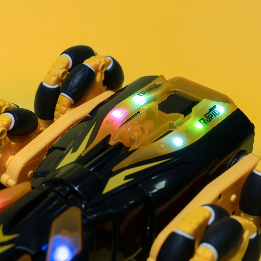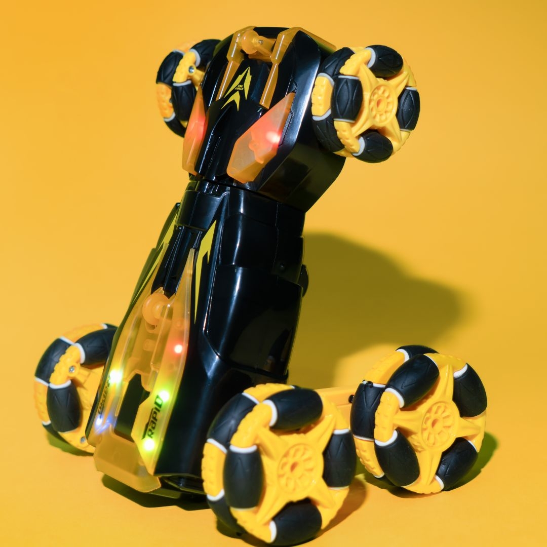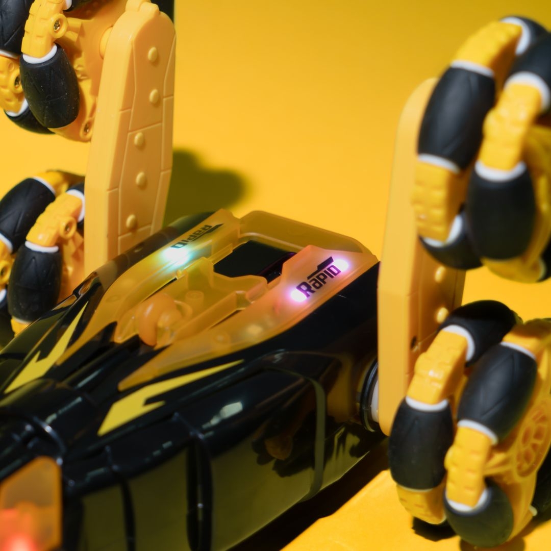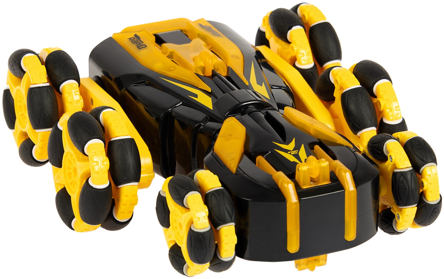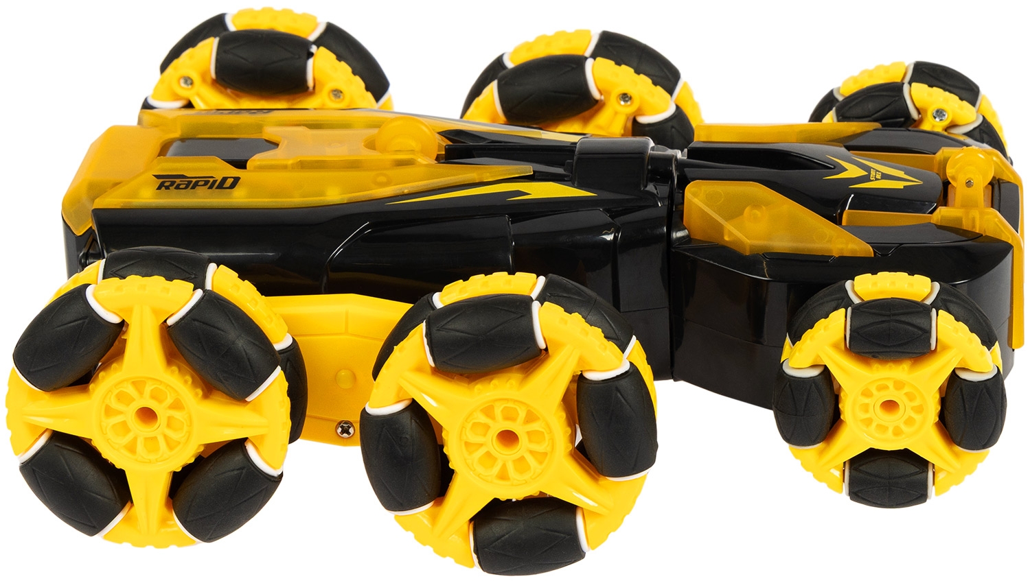 Готуйтеся до екстремальних трюків з всюдиходом UPSIDE DOWN! Цей 6-колісний монстр вміє їздити навіть вверх дригом, легко долає перешкоди та трансформується у вертикальне положення або арку. Машинка оснащена яскравими світловими ефектами, а передні та задні колеса обертаються на 360° у горизонтальній та вертикальній площині. Працює на частоті 2,4 ГГц, розганяється до 12 км/год і керується на відстані до 25 метрів. Час гри — до 20 хвилин драйву та адреналіну!