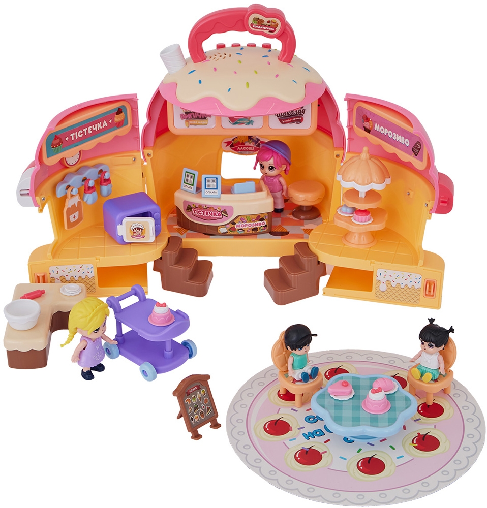 Серія ігрових наборів створена для розвитку уяви та творчих навичок дітей. У цьому наборі дитина поринатиме у світ кулінарних пригод: кухня, касова зона та місце для дегустації роблять гру захопливою та реалістичною. Світлові та звукові ефекти додають атмосфери, а безліч аксесуарів забезпечують тривалу гру та можливість вигадувати власні історії.