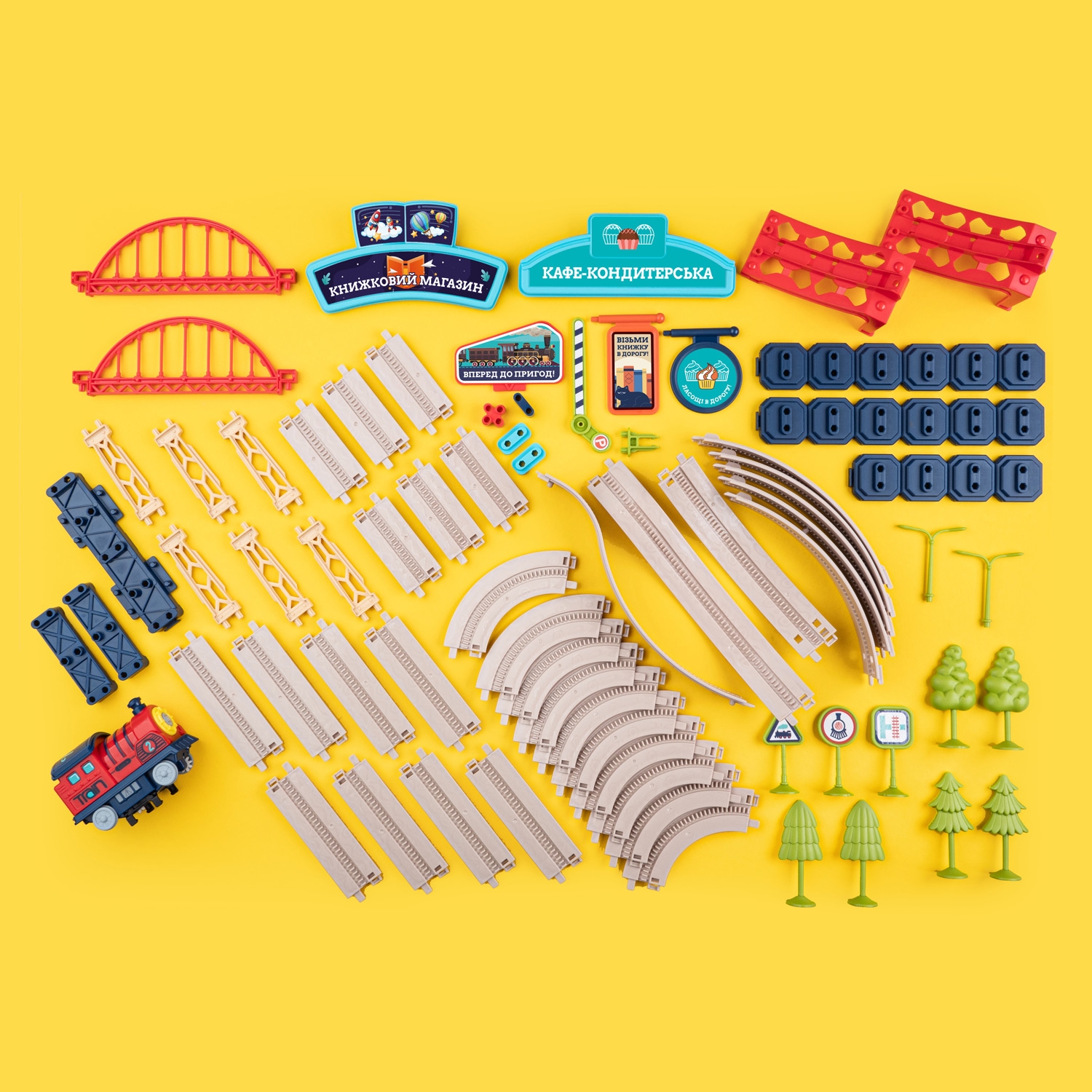 Трюкова залізниця «Хоробрий Паровозик» — захопливий ігровий набір для маленьких будівельників та дослідників! Створюйте траси з крутими спусками, підйомами, «мертвими петлями» та багаторівневими ділянками. Коробка-чемодан легко зберігає всі елементи і може використовуватися як частина траси, додаючи нові рівні. Кілька наборів можна об’єднувати для масштабних маршрутів.