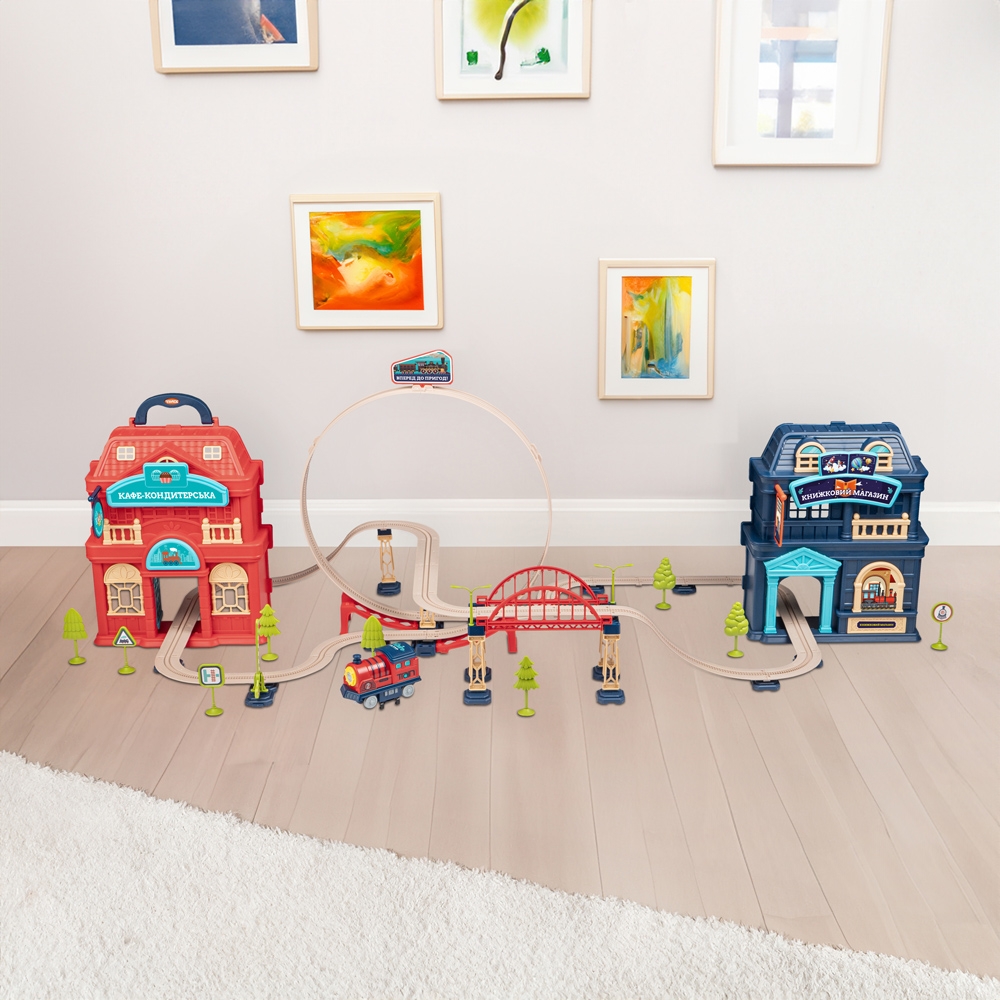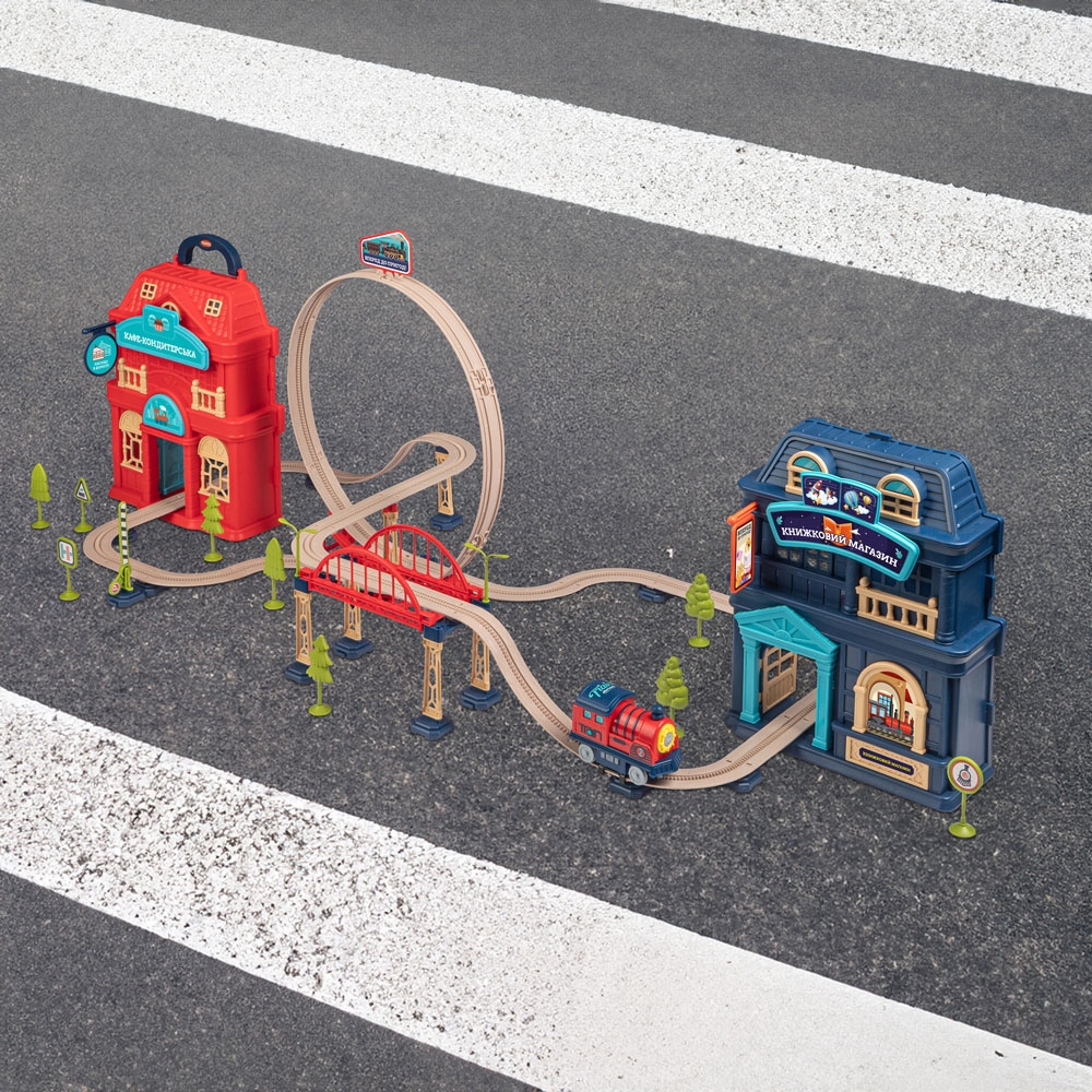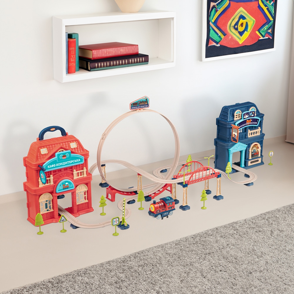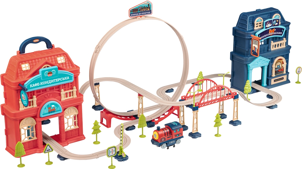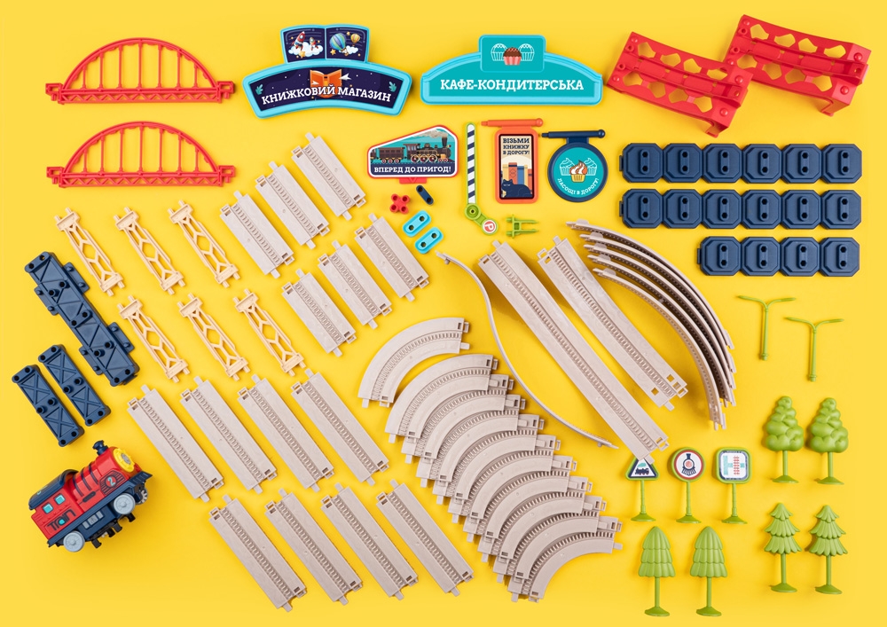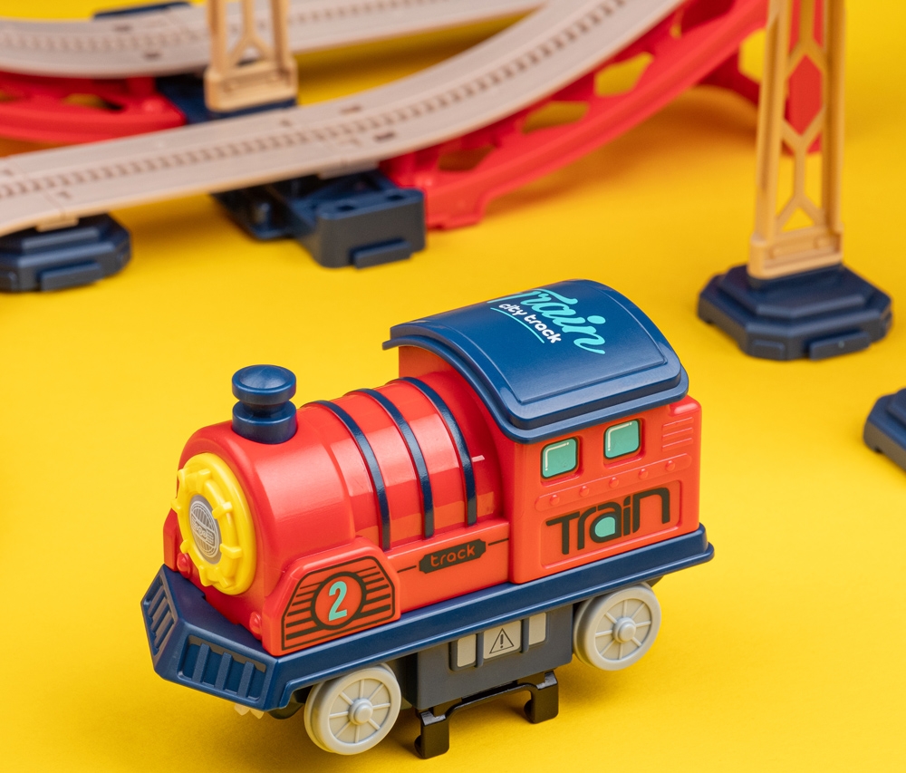 Трюкова залізниця «Хоробрий Паровозик» — захоплива іграшка для маленьких будівельників та дослідників! Створюйте траси з крутими спусками, підйомами, «мертвими петлями» та багаторівневими ділянками. Коробка-чемодан легко зберігає всі елементи і може використовуватися як частина траси. Звуковий ефект у паровозика робить гру ще більш реалістичною. Кілька наборів можна об’єднувати для масштабних маршрутів.