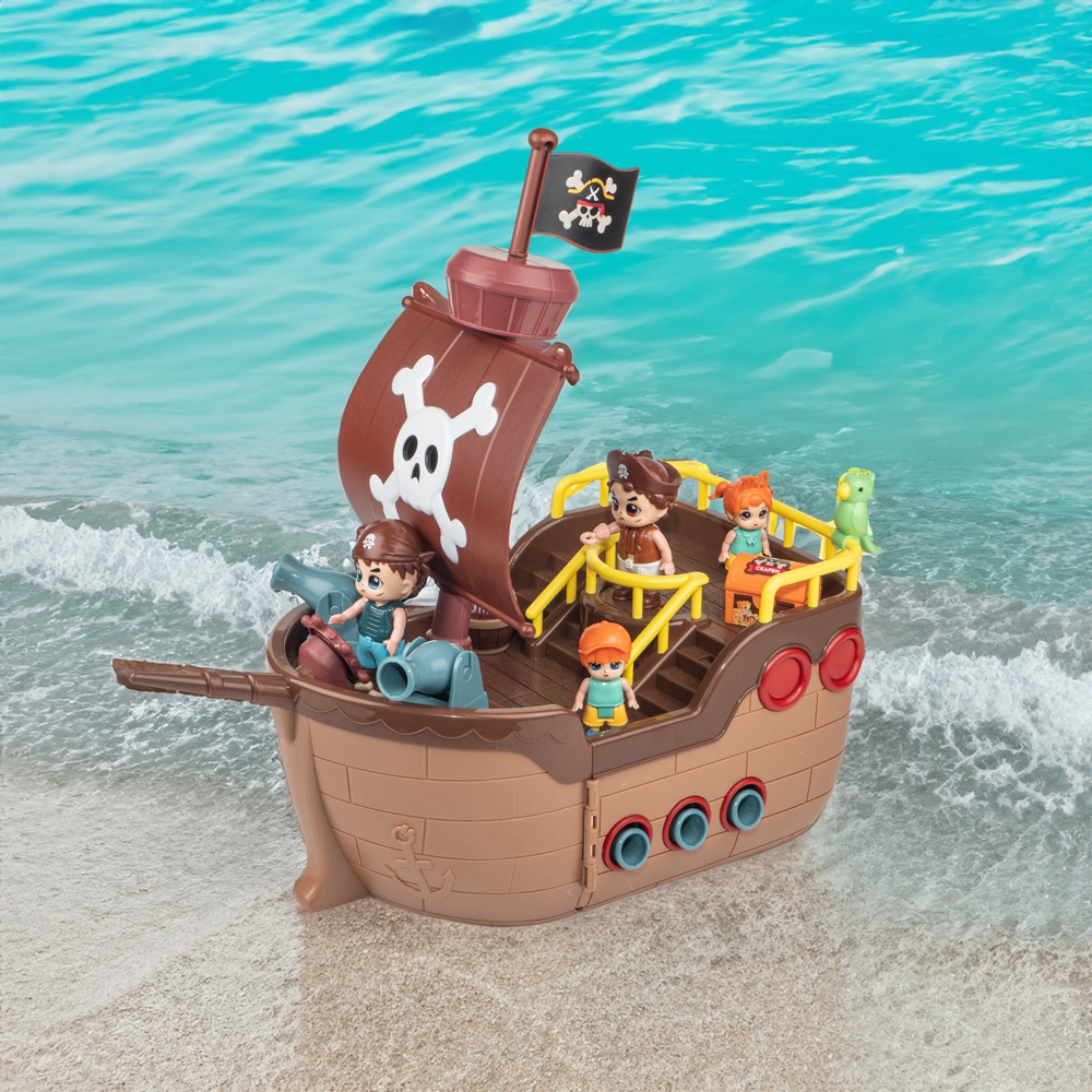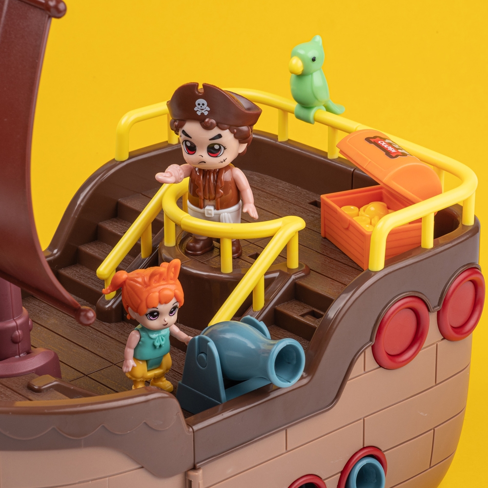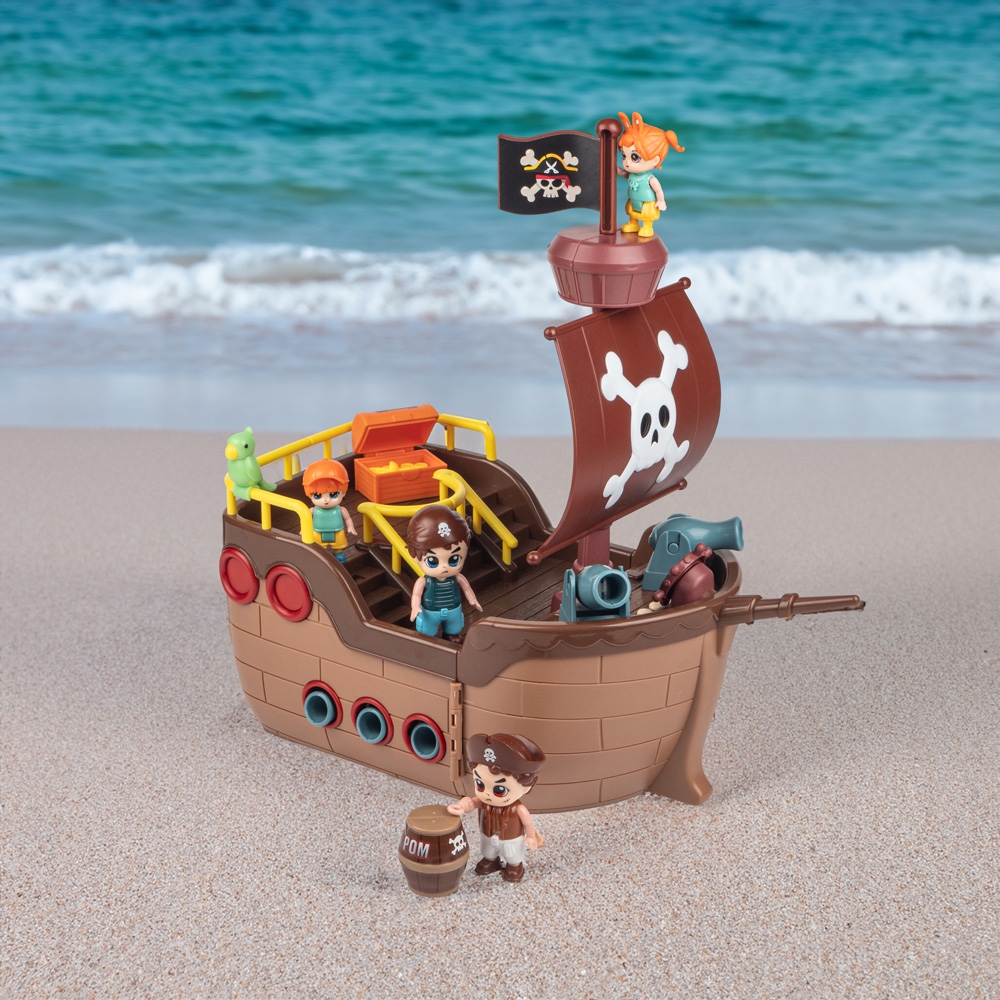 Ігровий набір «Піратський корабель» — ідеальна іграшка для маленьких капітанів! Набір включає 4 піратські фігурки та тематичні аксесуари, які можна зручно зберігати всередині корабля. Звукові ефекти роблять гру більш реалістичною, а вигадування пригод розвиває уяву та соціальні навички дитини.