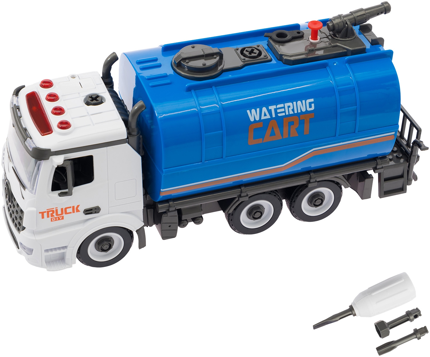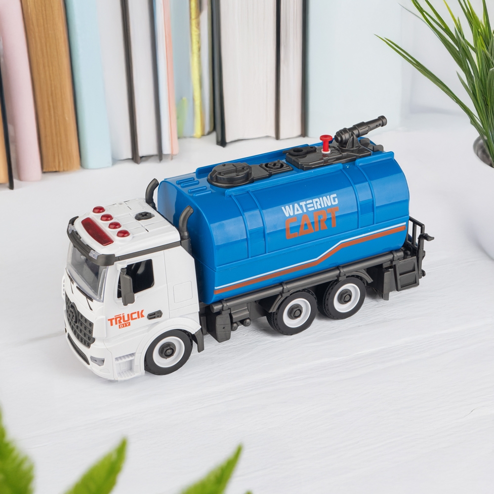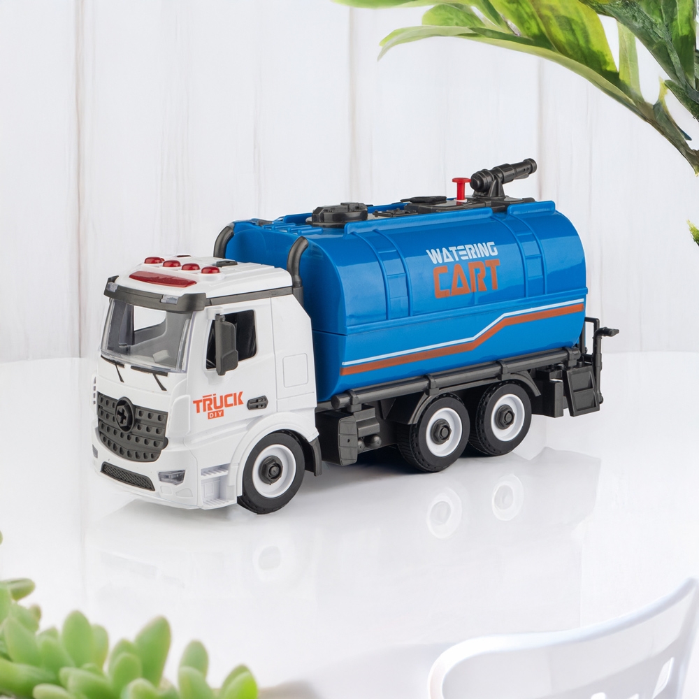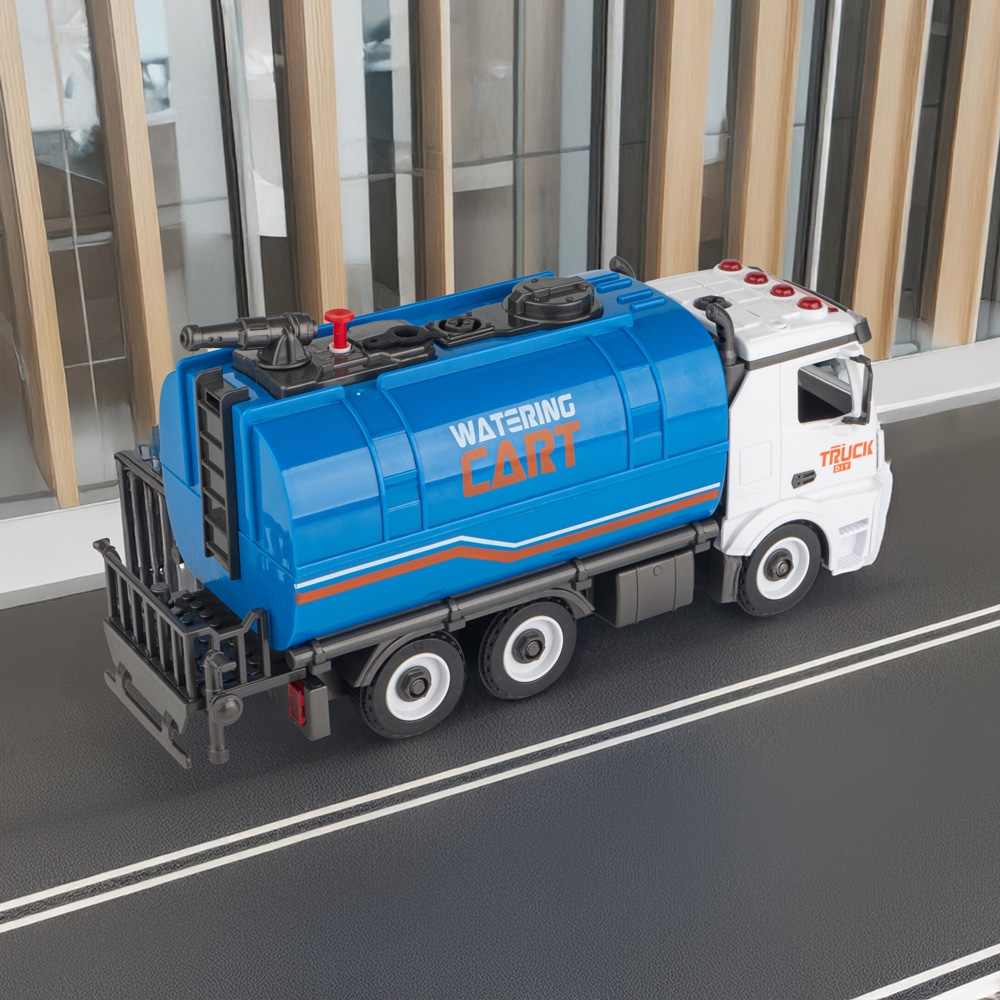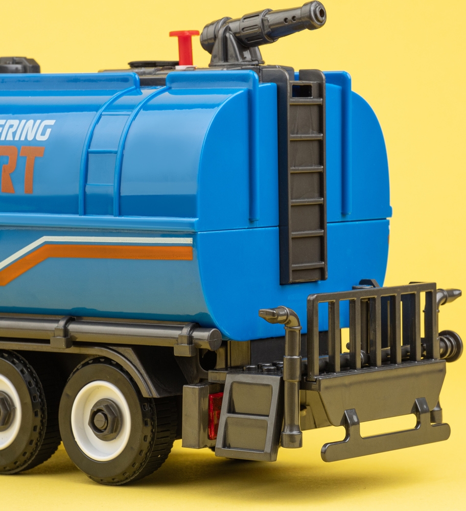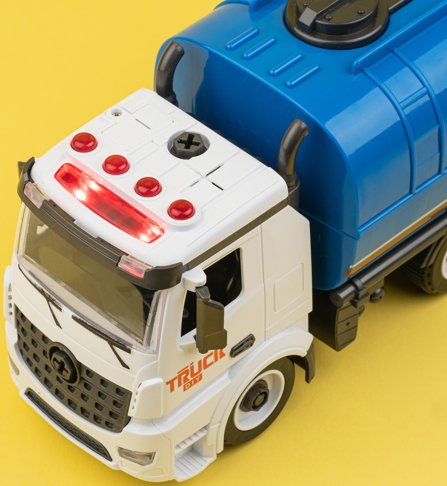 Автоконструктор «Комунальна служба» — водовоз стане чудовою іграшкою для дітей, які цікавляться спецтехнікою та люблять сюжетні ігри. Інерційний механізм забезпечує легкий рух машинки, а світлові та звукові ефекти відтворюють роботу справжньої комунальної техніки.