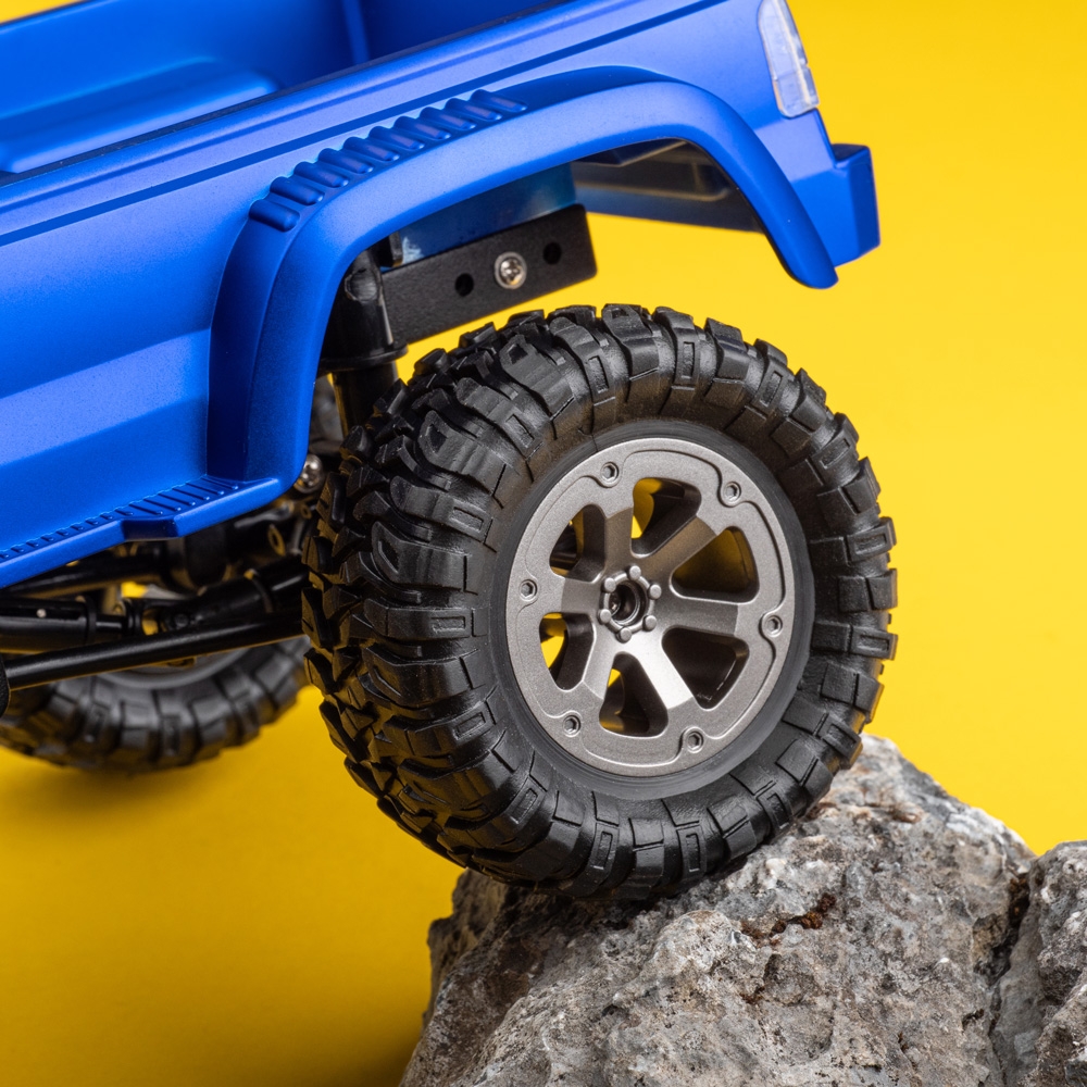 Потужний повний привід 4x4 та м’які шини забезпечують чудову прохідність — пікап легко долає пісок, каміння та траву. Радіокерування на частоті 2,4G стабільно працює на відстані до 50 метрів, а швидкість до 10 км/год робить гру ще динамічнішою.