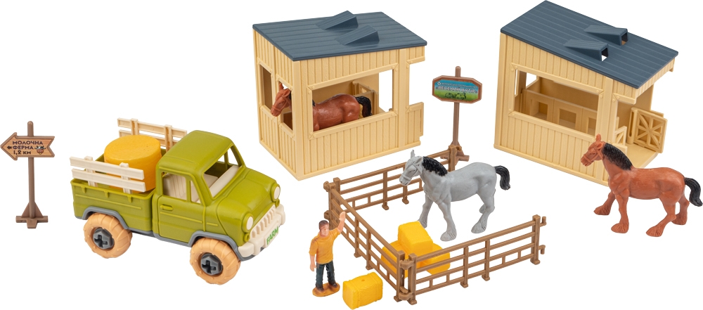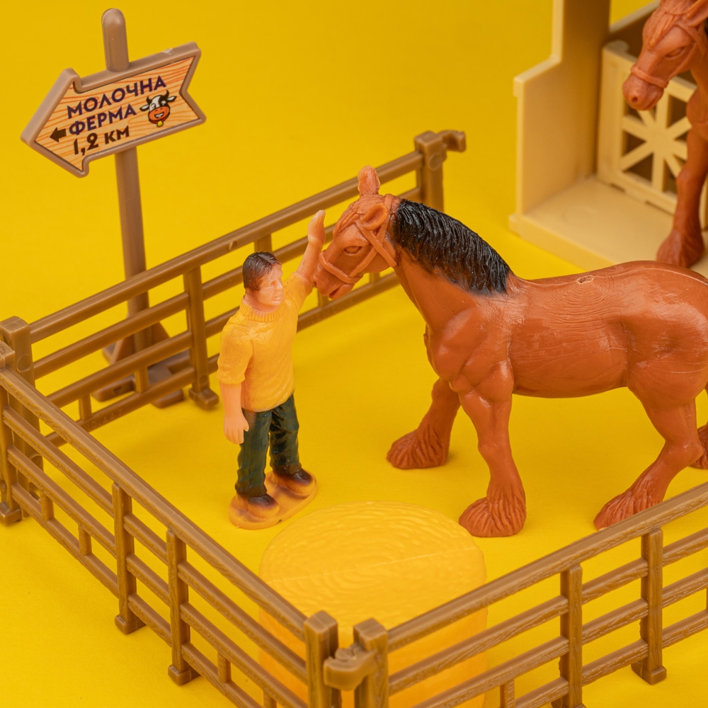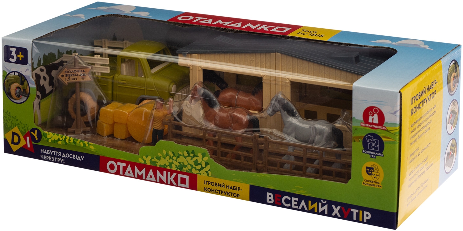 У наборі також є стайня, де фермер доглядає за тваринами, а фігурки фермера, тварин та додаткові аксесуари дозволяють вигадувати безліч цікавих історій про життя на фермі. Всі деталі мають гладкі та безпечні краї, тому батьки можуть не хвилюватися за безпеку дітей. Гра з Отаманчиком робить кожен день на фермі веселим та пізнавальним!
