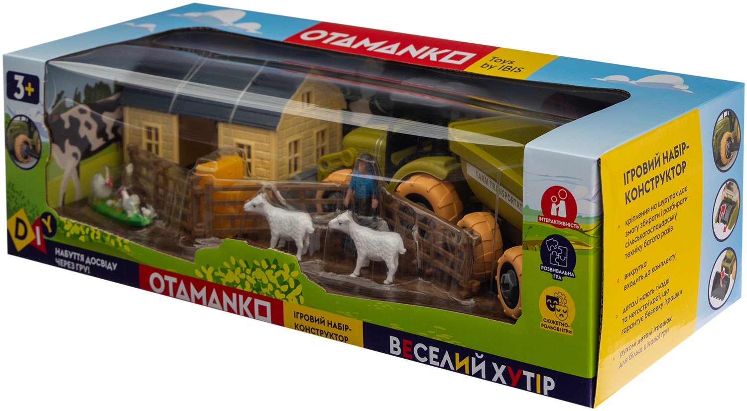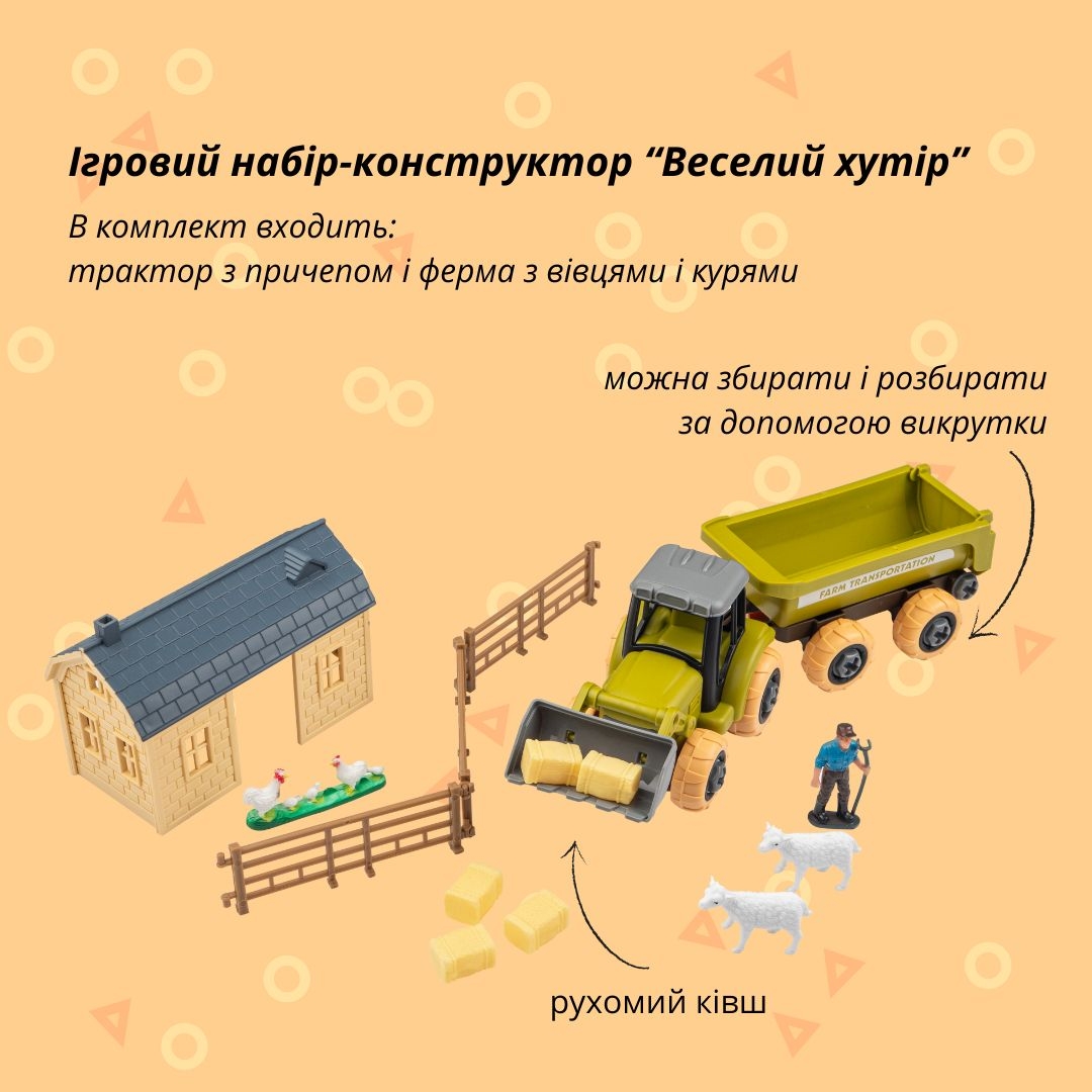 Привіт! Отаманчик запрошує вас у захопливу пригоду на ферму з набором-конструктором «Веселий хутір» з трактором та причепом!