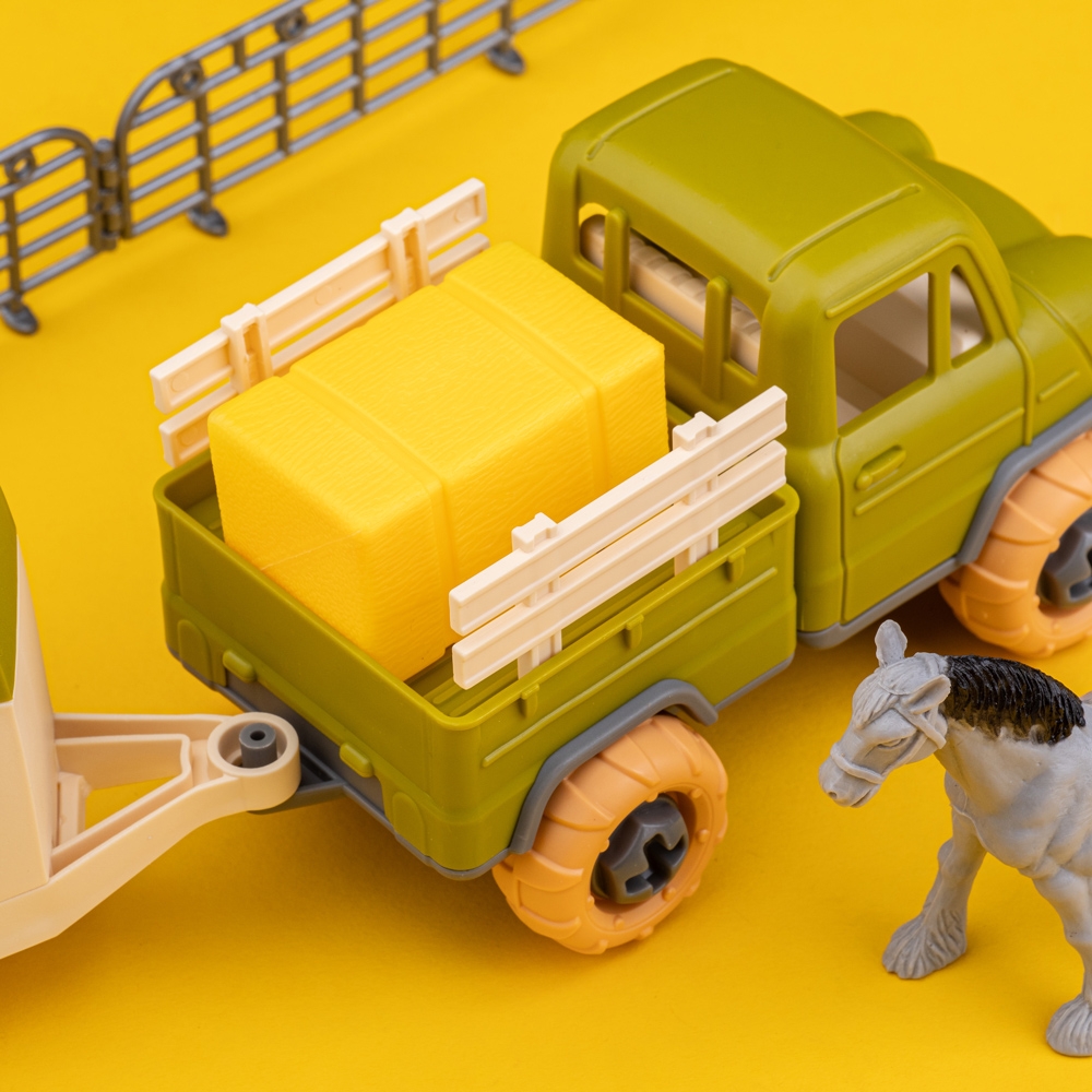 До набору також входять фігурки фермера та тварин, щоб зробити гру ще цікавішою. Всі деталі безпечні та мають гладкі краї, тому батьки можуть не хвилюватися.