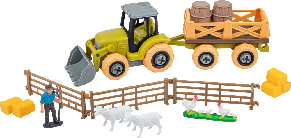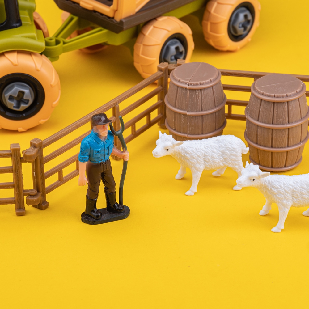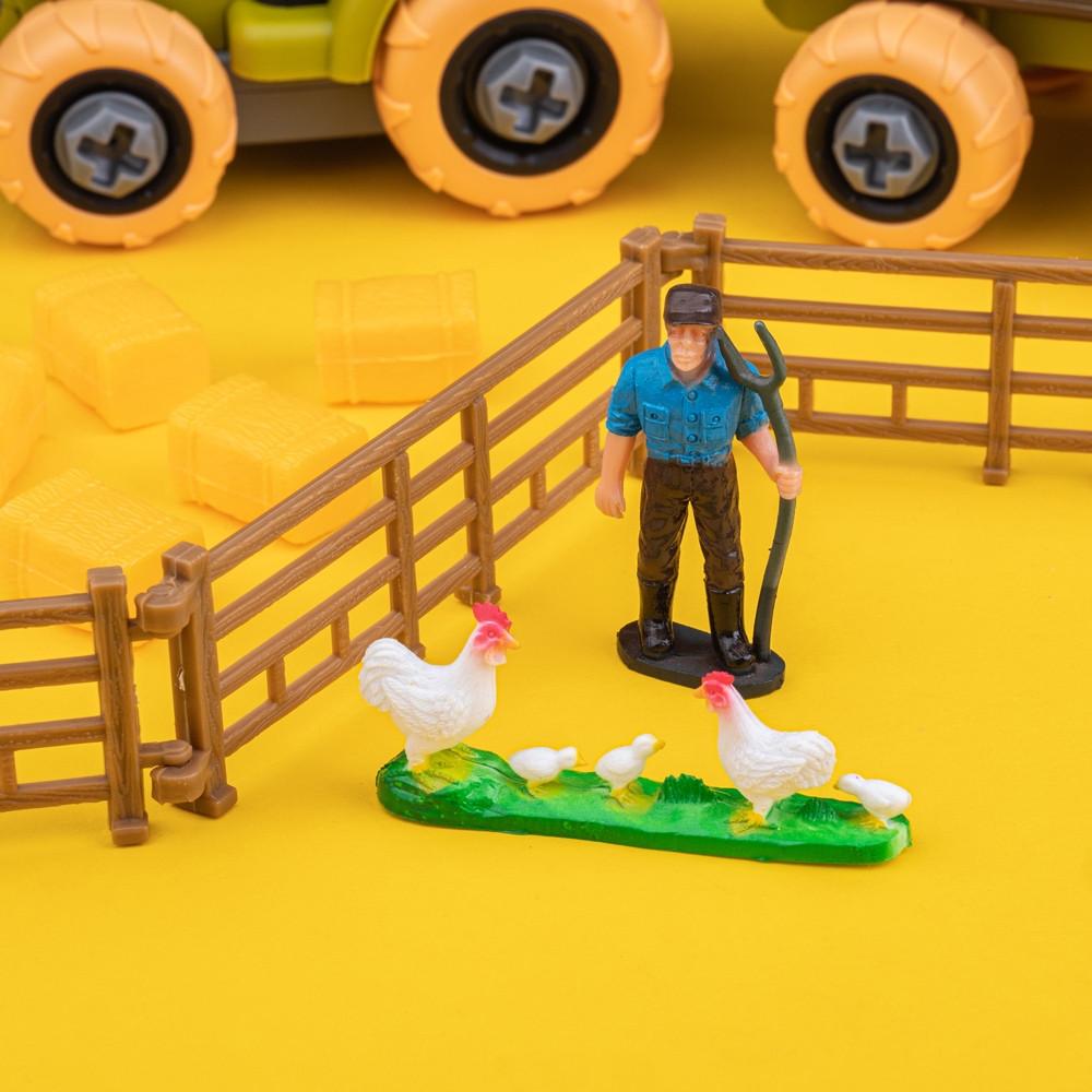 У комплекті також є фігурки фермера та тварин, а також додаткові аксесуари для цікавих ігор. Всі деталі мають гладкі краї, тож батьки можуть бути спокійні за безпеку дітей.