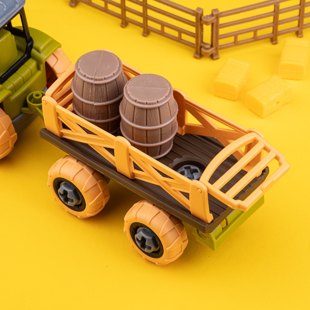 З цим набором можна зібрати справжній трактор із причепом, який легко збирати та розбирати багато разів за допомогою спеціальної викрутки. Маленькі механіки зможуть самостійно управляти технікою, розвиваючи уяву та навички.