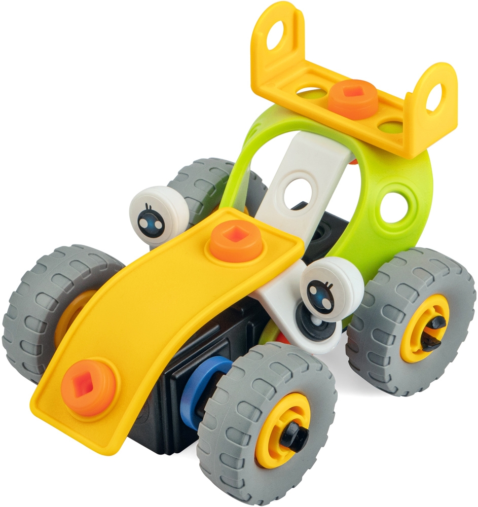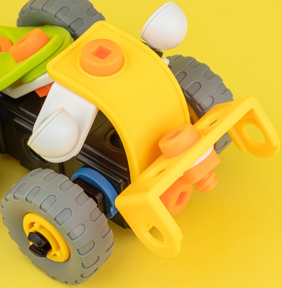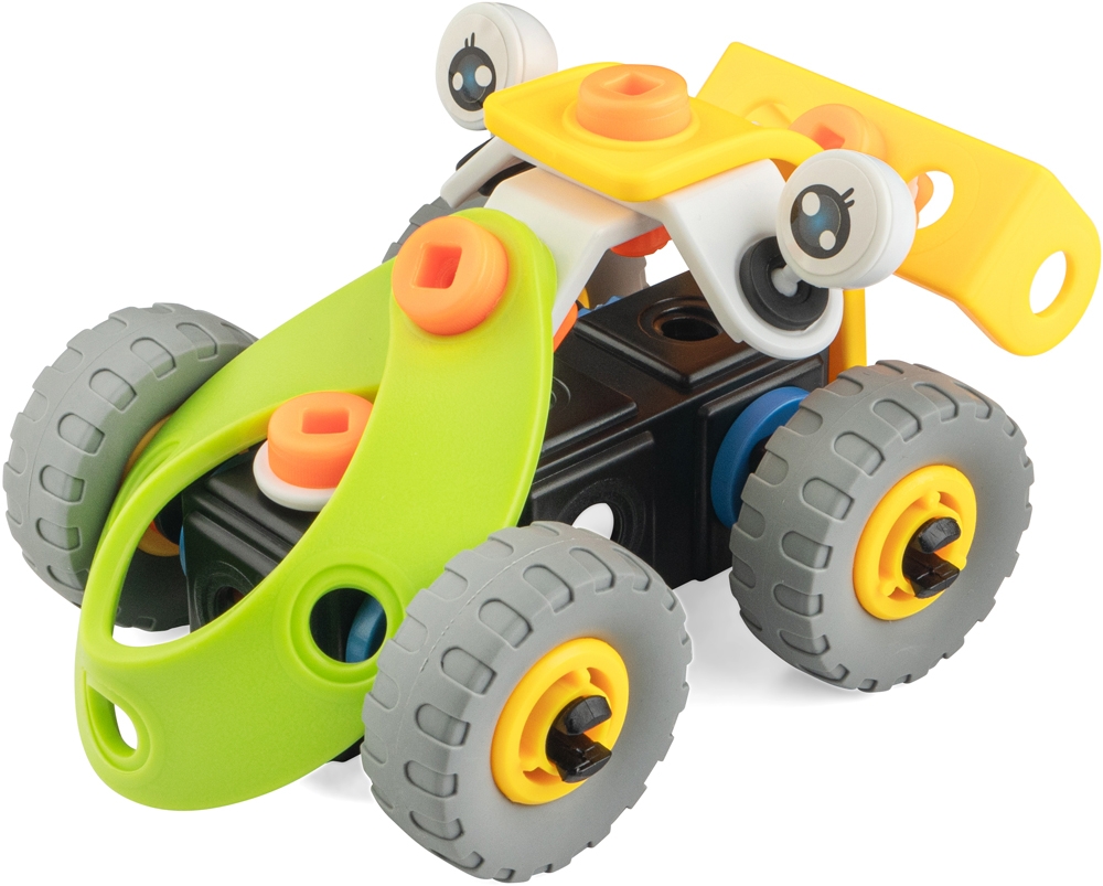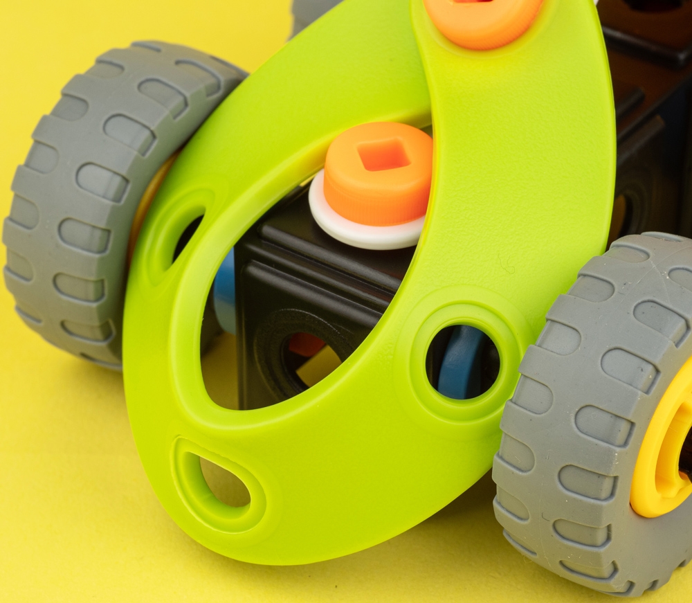 Яскраві гнучкі деталі з безпечними гладкими краями легко з’єднуються за допомогою болтів. З набору можна збирати як моделі за інструкцією, так і створювати власні унікальні конструкції.