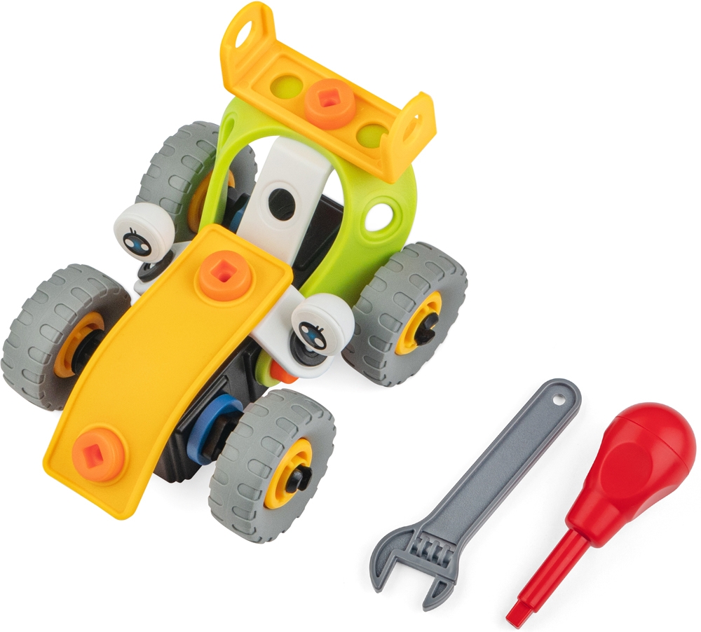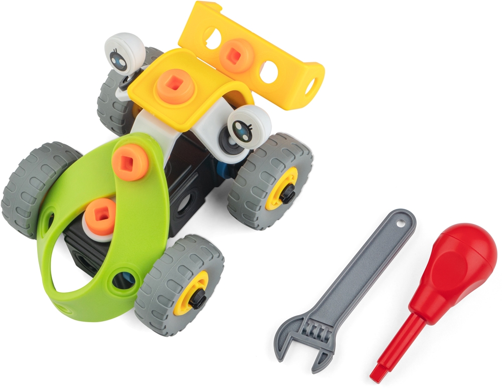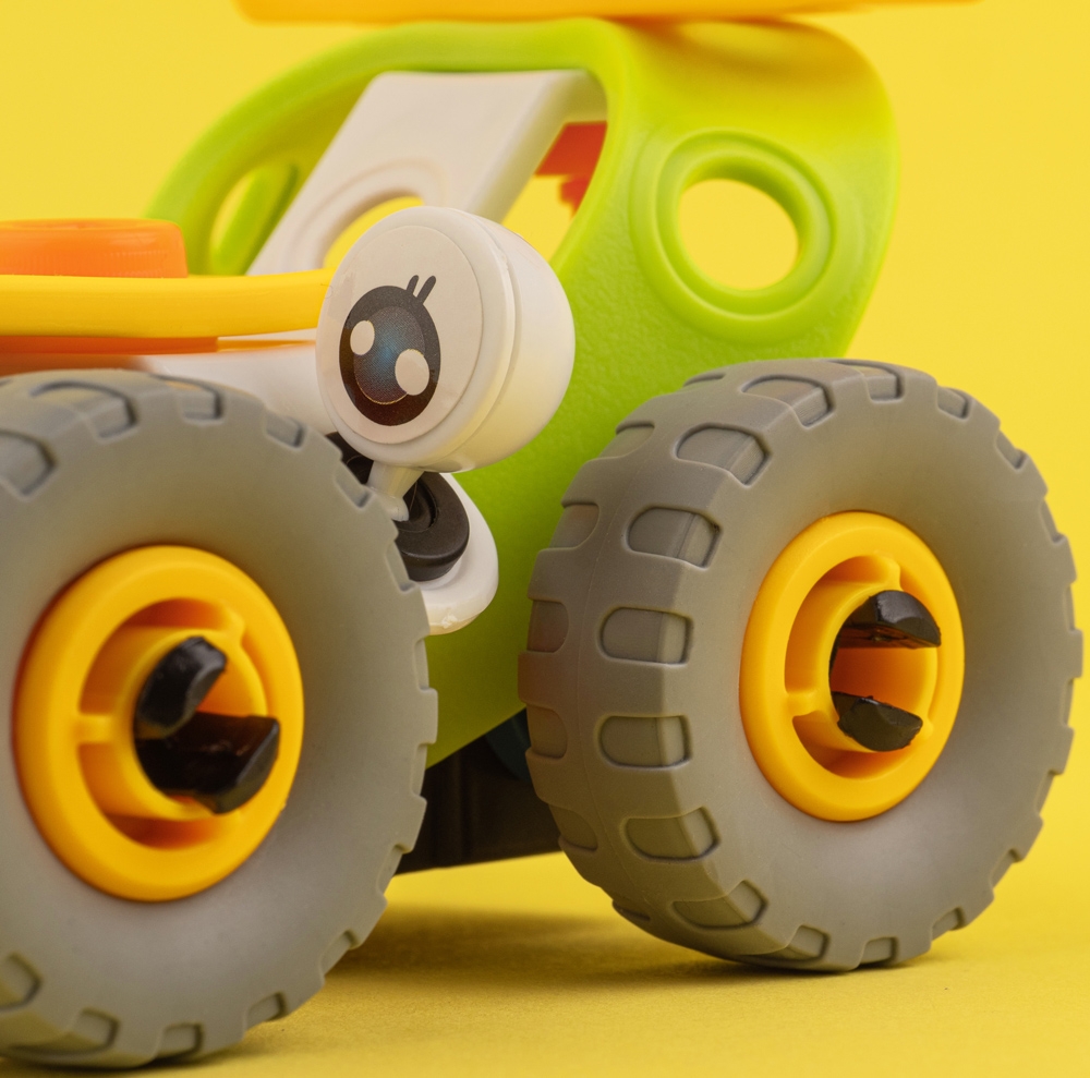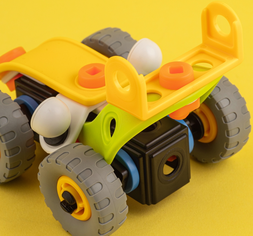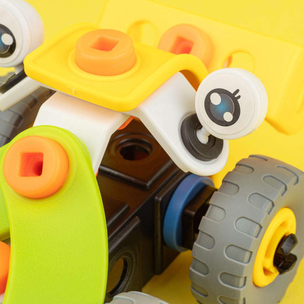 Яскраві гнучкі деталі з безпечними гладкими краями легко з’єднуються за допомогою болтів. З набору можна збирати як моделі за інструкцією, так і створювати власні унікальні конструкції.