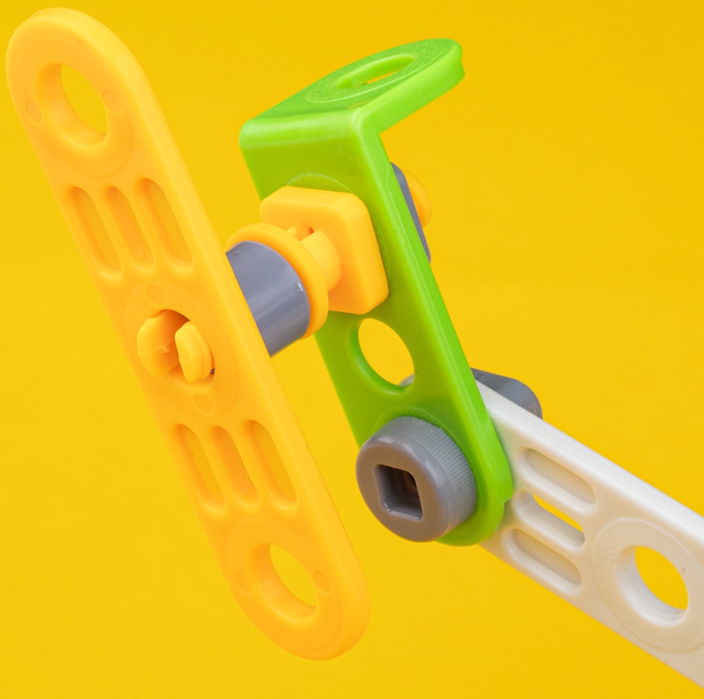 М'які різнокольорові деталі з закругленими краями легко з'єднуються за допомогою болтового з'єднання.