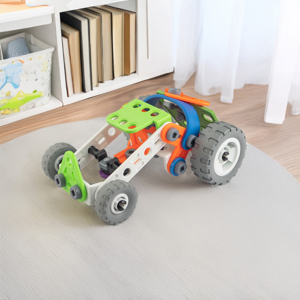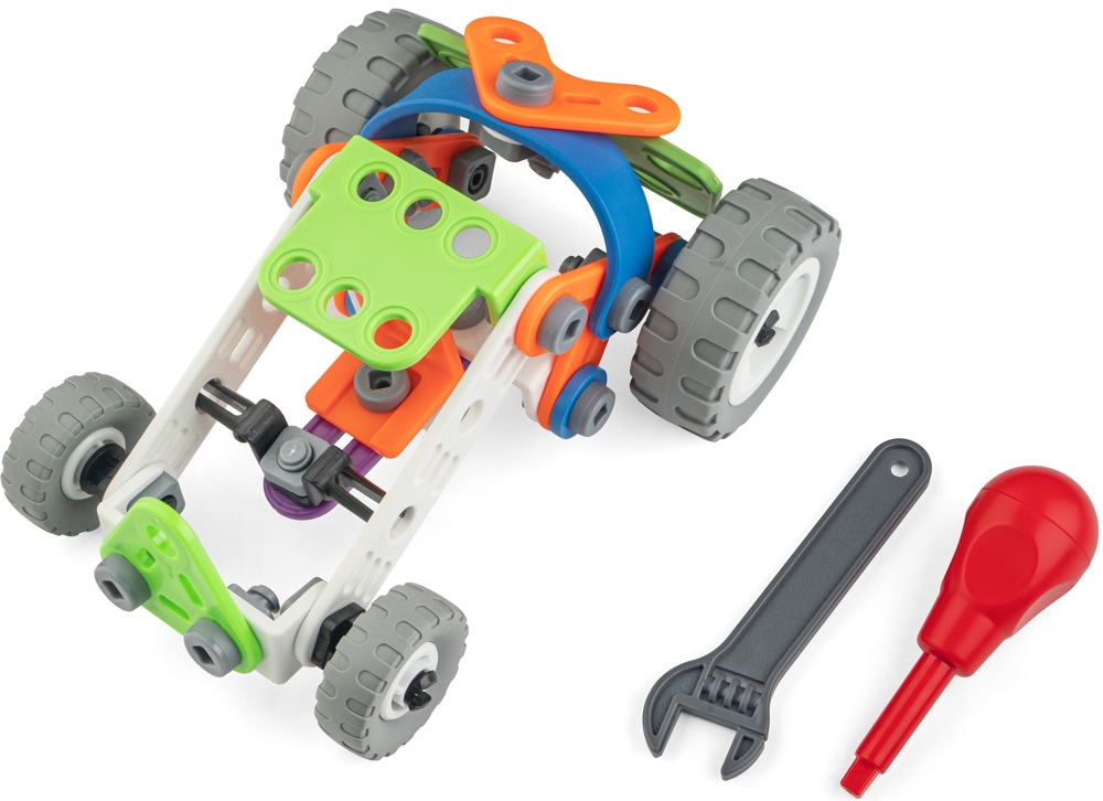 Зберіть цю машинку разом з малюками готуйте її до змагань та вирушайте до фінішу з блискавичною швидкістю Цей набір допоможе розвинути технічні навички уяву та стане ідеальним розвагою для маленьких любителів швидкості та пригод
