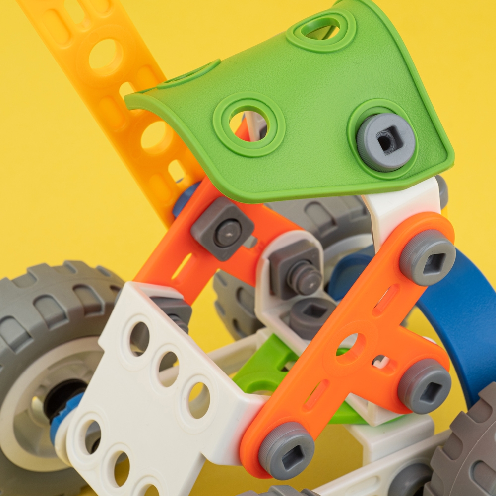 З 74 деталей ви зможете зібрати потужний трактор — справжнього героя лісових просторів.
