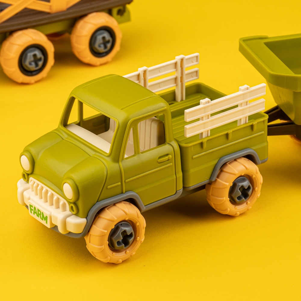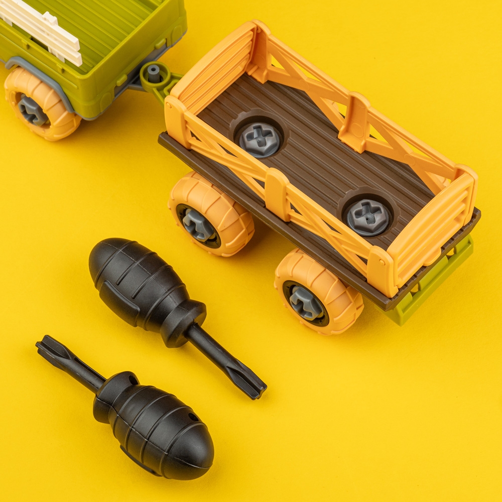 Сільськогосподарську техніку можна збирати й розбирати багато разів за допомогою викрутки. Усі деталі мають гладкі та негострі краї, що гарантує безпеку іграшки.
