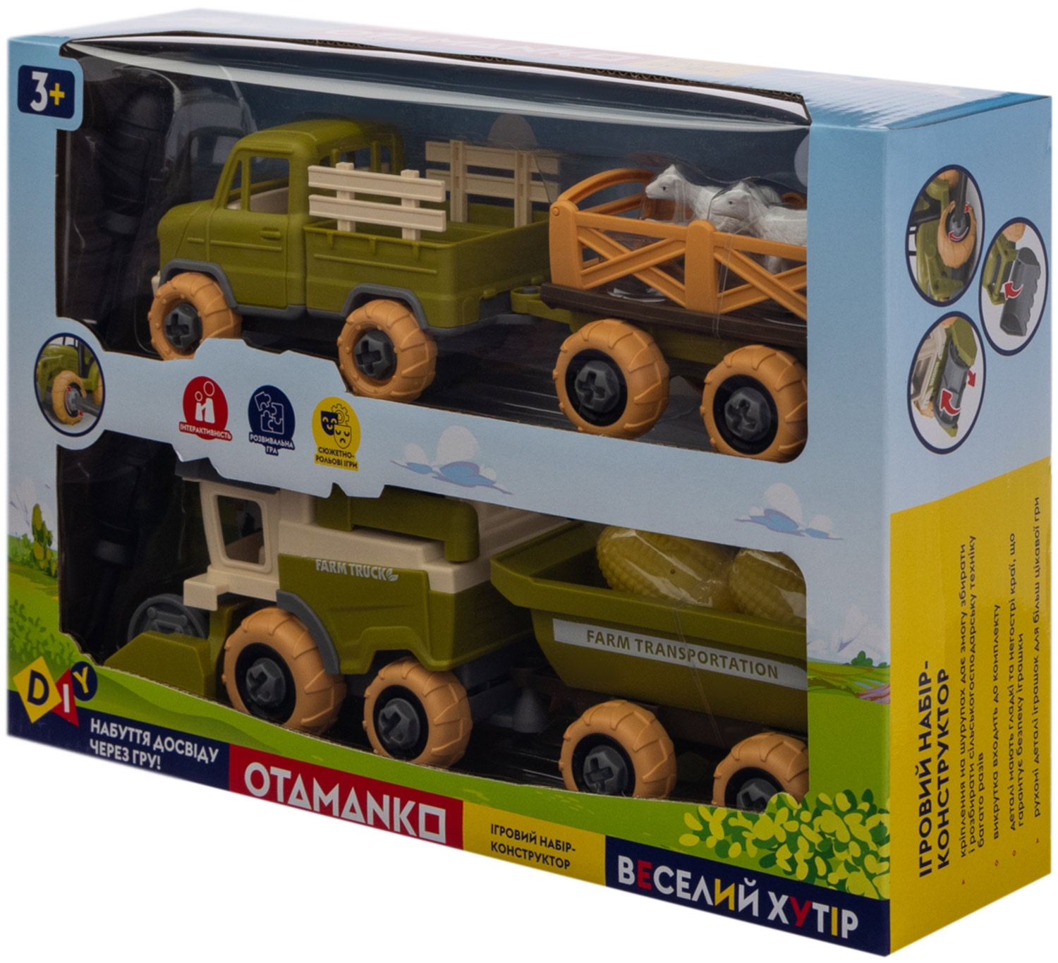 Гладкі та надійні деталі створені для безпечної гри, а процес збирання техніки подарує малюку масу задоволення. Отаманчик впевнений: з цим набором ваша ферма оживе, а ігри стануть ще цікавішими!