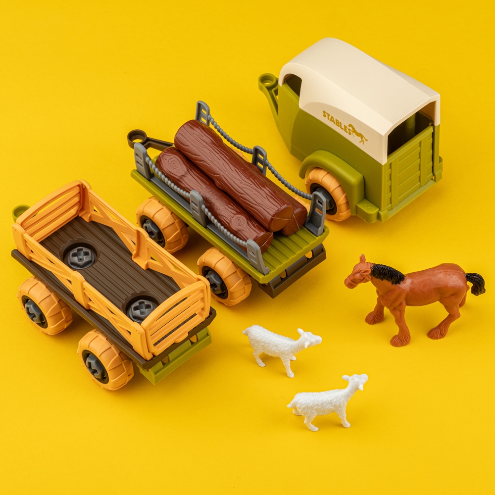 Додайте до цього фігурки тварин та аксесуари – і отримуєте повноцінний фермерський світ для захопливих рольових ігор! Перевозьте вантажі та піклуйтеся про мешканців хутора. Усі деталі безпечні, мають гладкі краї.