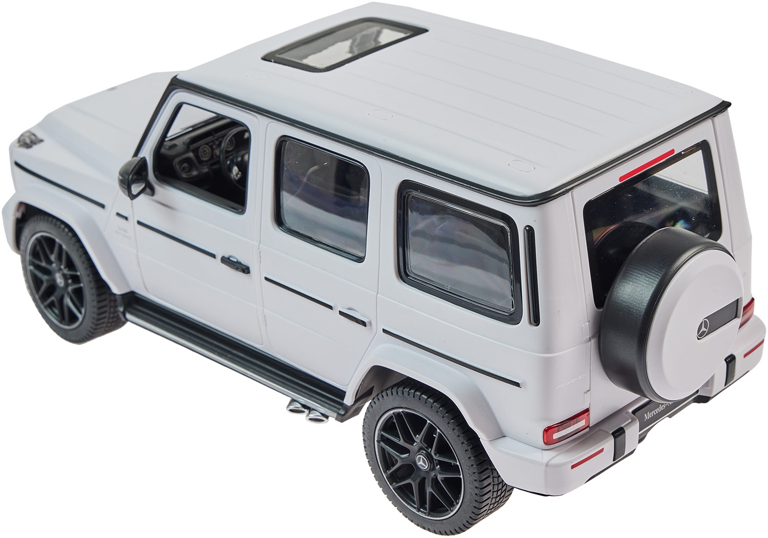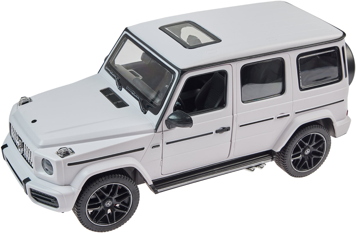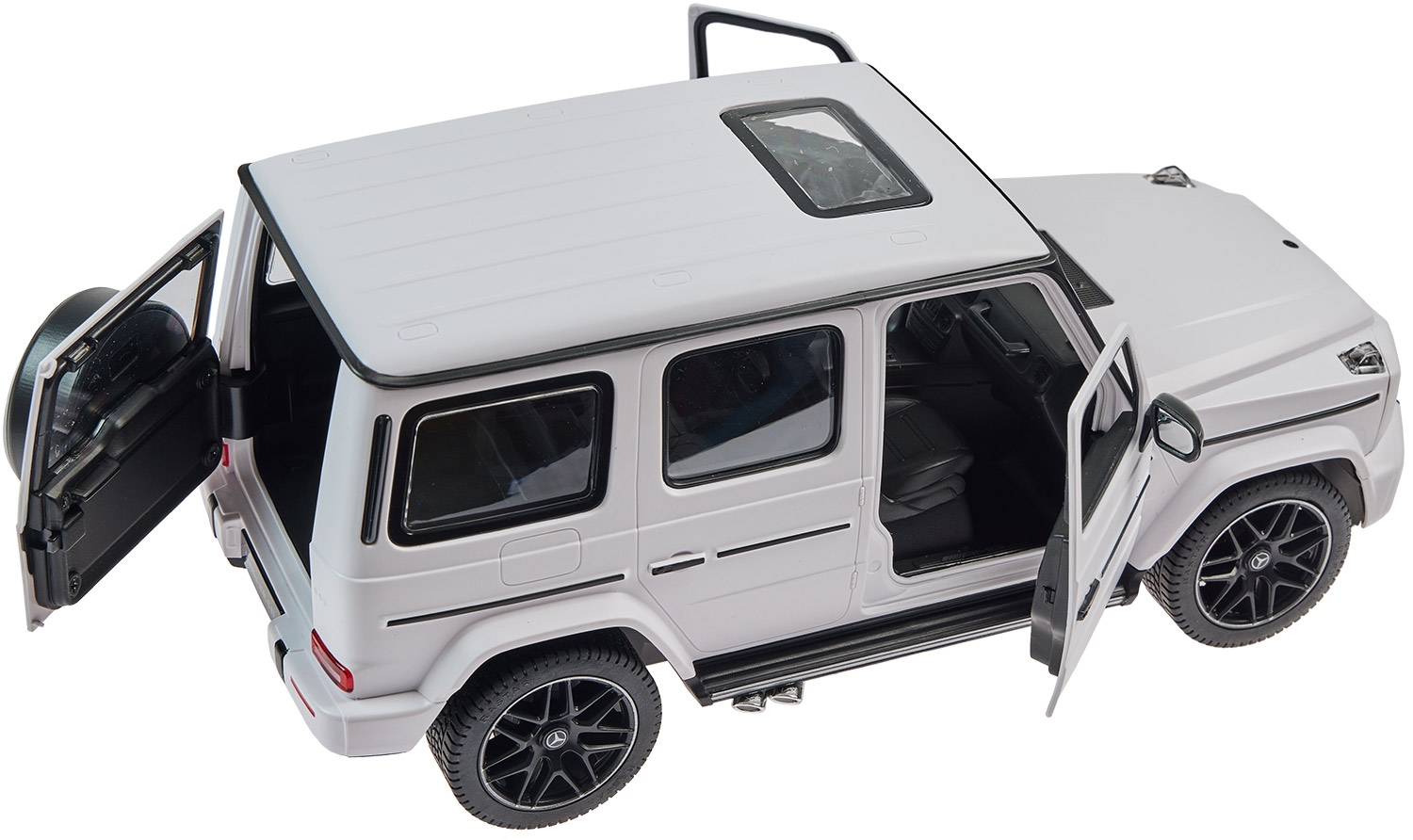 Відтворіть міць та стиль легендарного Mercedes-Benz G63 AMG з радіокерованою моделлю від Rastar у масштабі 1:14. Ця біла машинка – не просто іграшка, а точна копія з вражаючою увагою до деталей: від характерної решітки радіатора до емблеми на капоті.
