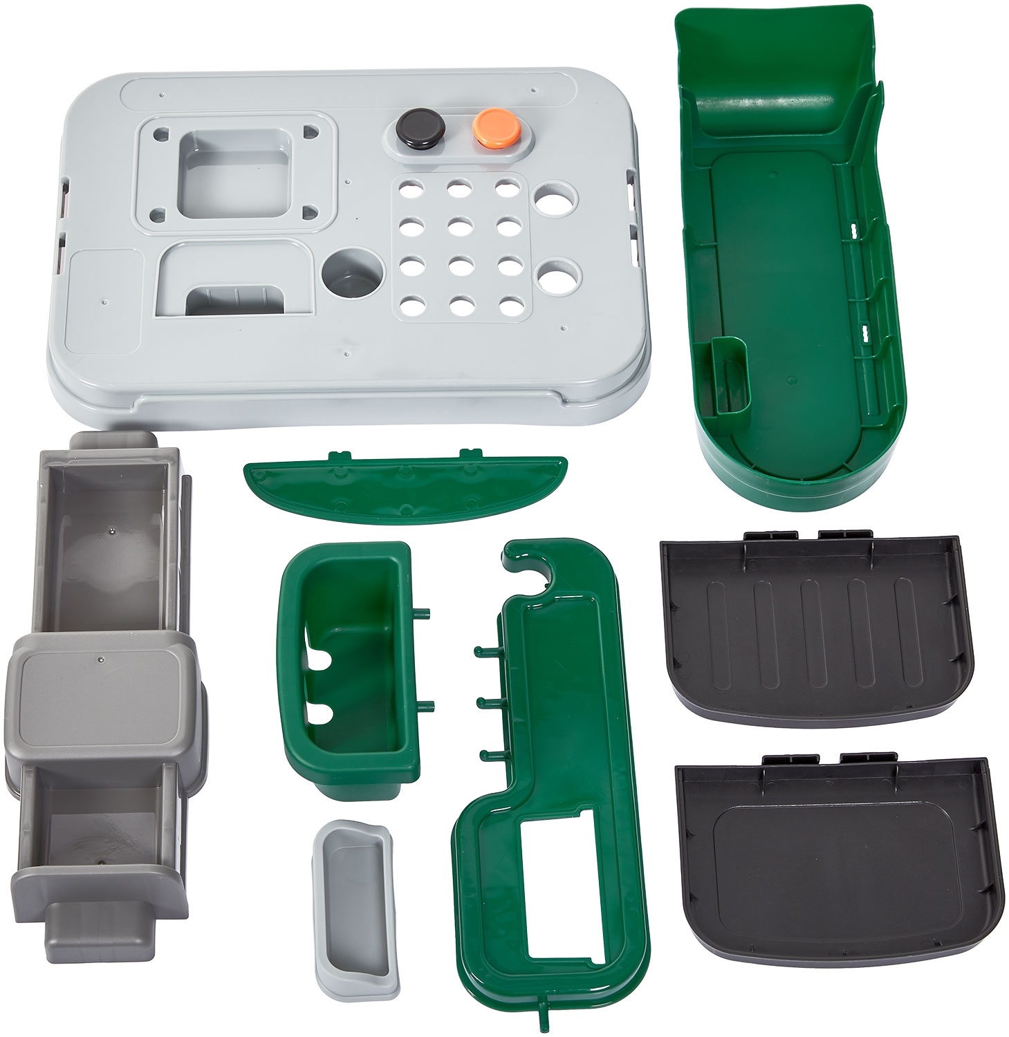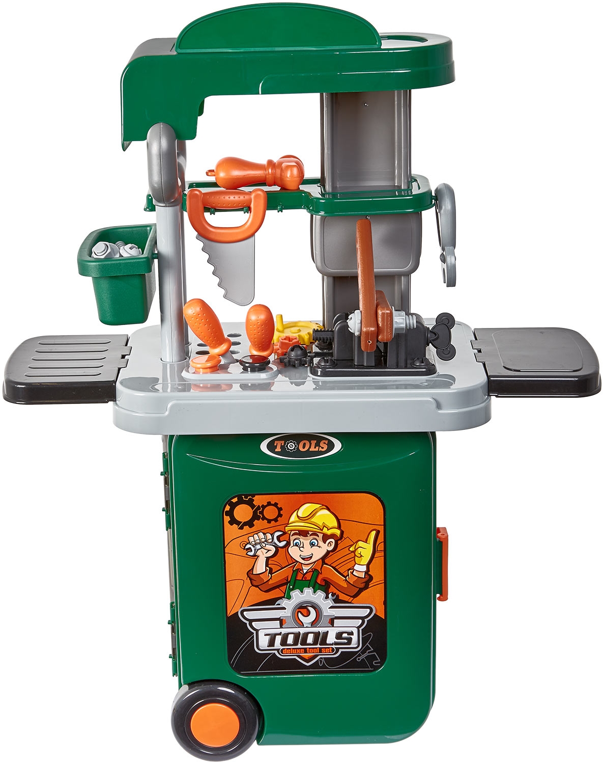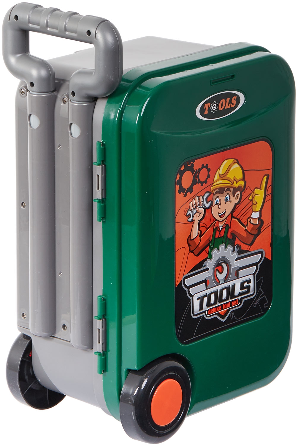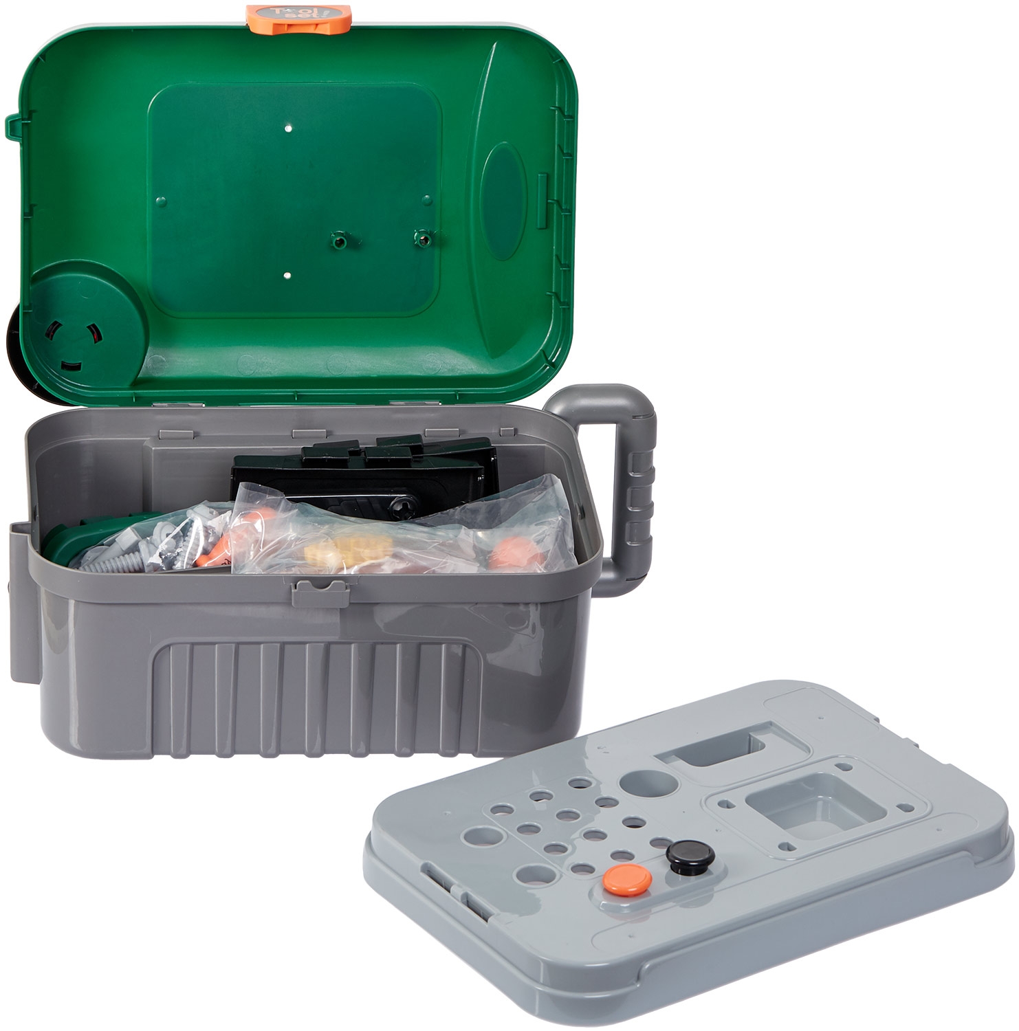 Набір являє собою маленький чемодан із іграшковими інструментами та комплектуючими. Основний матеріал — м’який пластик, усі деталі продумані для безпеки дитини та оточуючих. Гра розвиває моторику, уяву та інтерес до фізичної праці.