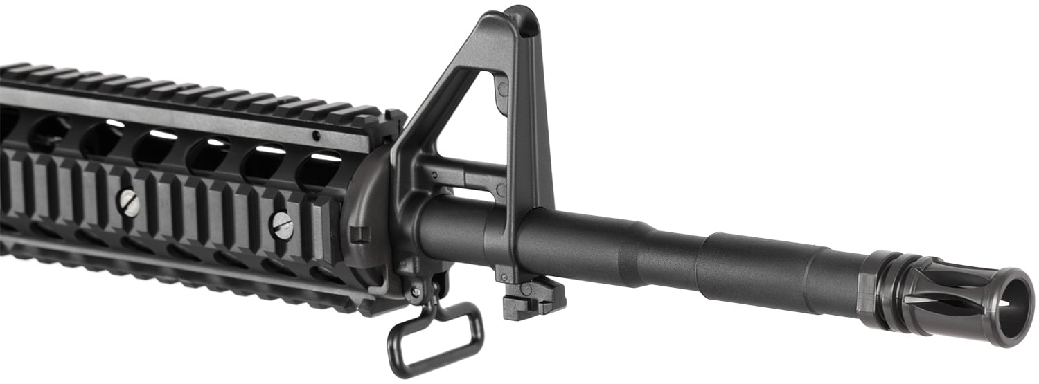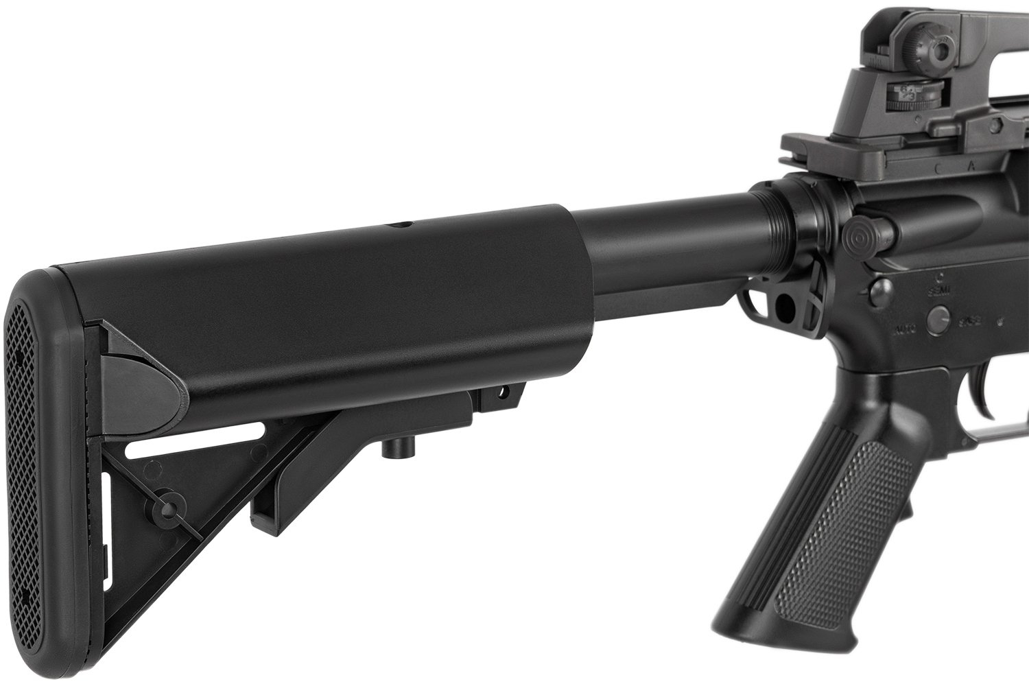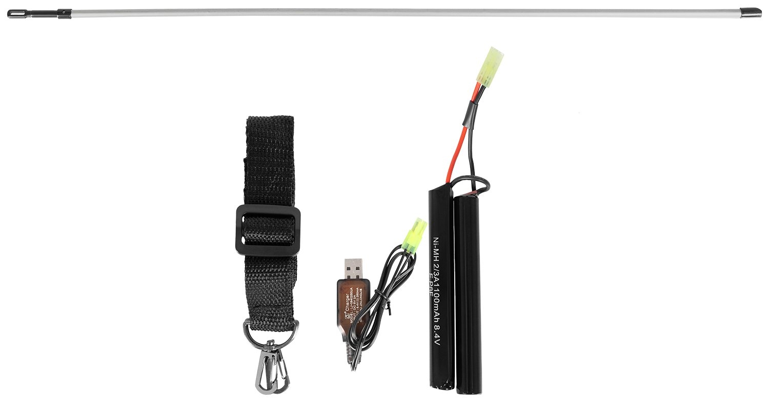 Зовнішні елементи, такі як ствольна коробка та цівка, виготовлені з міцного полімеру, а зовнішній ствол і дрібні функціональні деталі — з металу. Регульована система Hop-Up дозволяє налаштувати траєкторію польоту кульок BB для підвищення точності на різних дистанціях. У комплект входить акумулятор, що робить гвинтівку готовою до використання одразу після покупки.