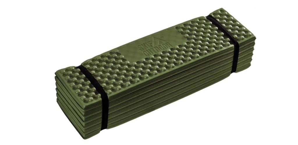 Модель складається гармошкою та фіксується еластичними стрічками. На відміну від традиційних килимків рулонного типу, каремат Skif Outdoor Transformer самостійно не згортається.