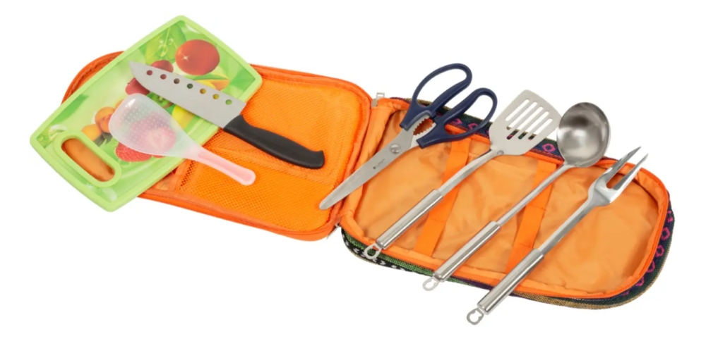 Skif Outdoor Chief's Vocation – багатофункціональний набір кухонного начиння від Skif Outdoor. Перше, що впадає у вічі – це яскравий дизайн чохла з етно орнаментом. Усередині ви знайдете повноцінний набір для приготування супів, смаження м'яса, нарізки овочів і т.д. Кожен предмет набору розміщено в індивідуальному відсіку.Комплект Chief's Vocation стане гарним помічником на рибалці, на пікніку чи навіть удома.