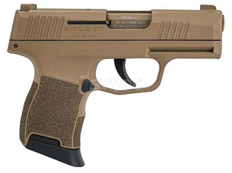 Пістолет сигнальний Aksa Arms AK21 CC-08 — це вибір для цінителів продуманої ергономіки, надійності та класичної форми в стартовій зброї. Модель, виконана у стилі Sig Sauer P365, призначена для стрільби холостими патронами калібру 9 мм P.A.K. і поєднує строгий зовнішній вигляд із сучасною функціональністю.