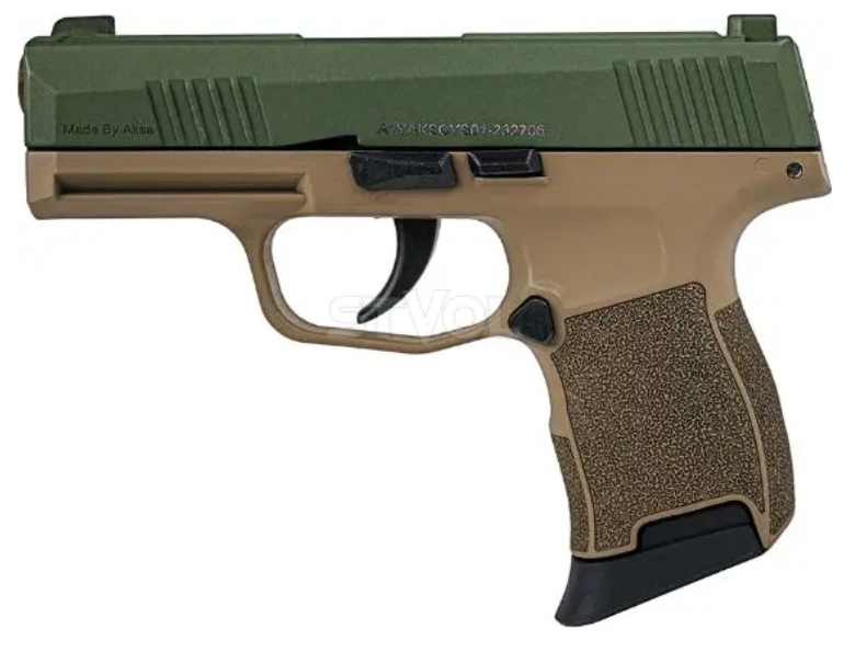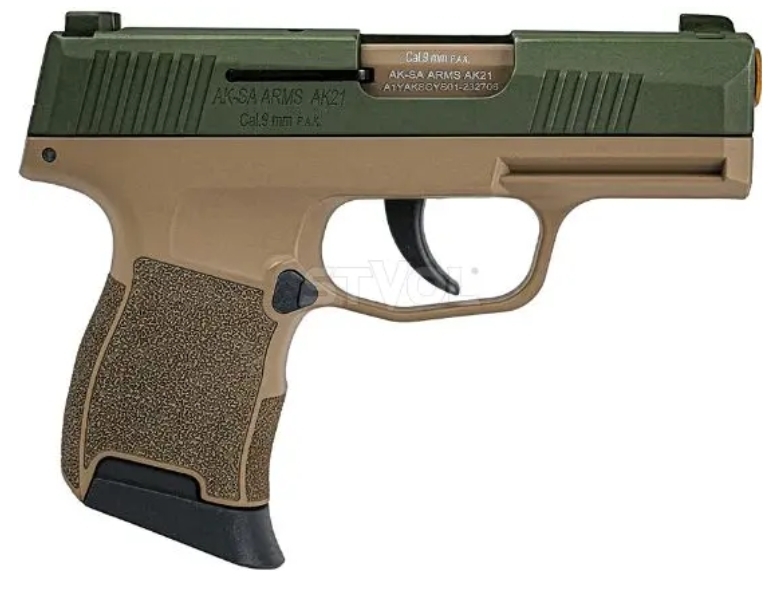 Пістолет сигнальний Aksa Arms AK21 CC-06 — це вибір для цінителів продуманої ергономіки, надійності та класичної форми в стартовій зброї. Модель, виконана у стилі Sig Sauer P365, призначена для стрільби холостими патронами калібру 9 мм P.A.K. і поєднує строгий зовнішній вигляд із сучасною функціональністю.