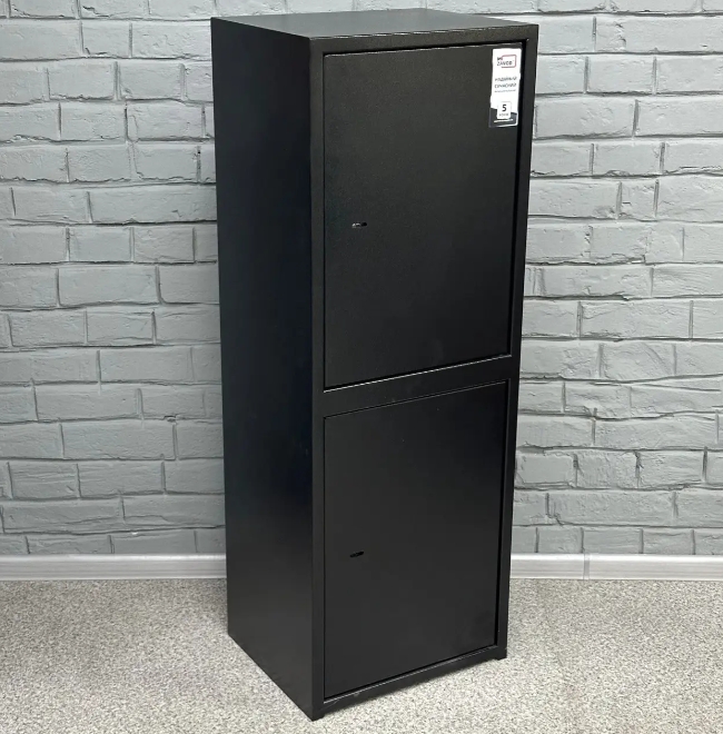 Двосекційний сейф, кожна секція має двері і закривається окремим замком сувальдного типу з 3 ригелями діаметром 10 мм (горизонтальне відмикання). Верхня секція обладнана 1 знімною полицею та касовим відділенням, що замикається замком Euro-lock із секретністю - 2000 комбінацій. Нижня секція розділена 1 знімною полицею.