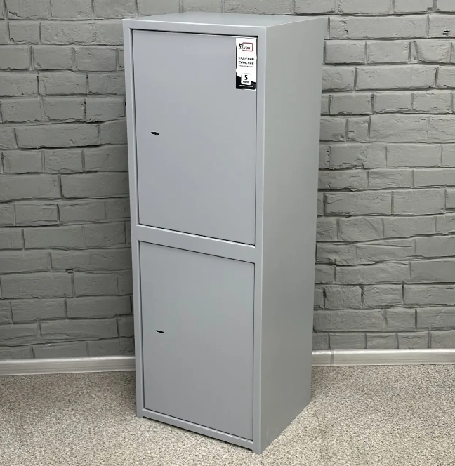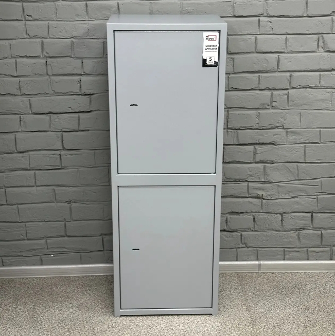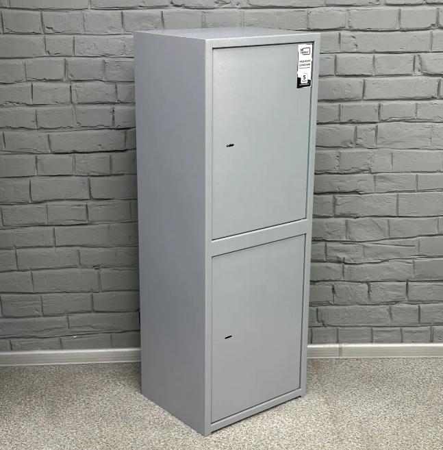 Двосекційний сейф, кожна секція має двері і закривається окремим замком сувальдного типу з 3 ригелями діаметром 10 мм (горизонтальне відмикання). Верхня секція обладнана 1 знімною полицею та касовим відділенням, що замикається замком Euro-lock із секретністю - 2000 комбінацій. Нижня секція розділена 1 знімною полицею.