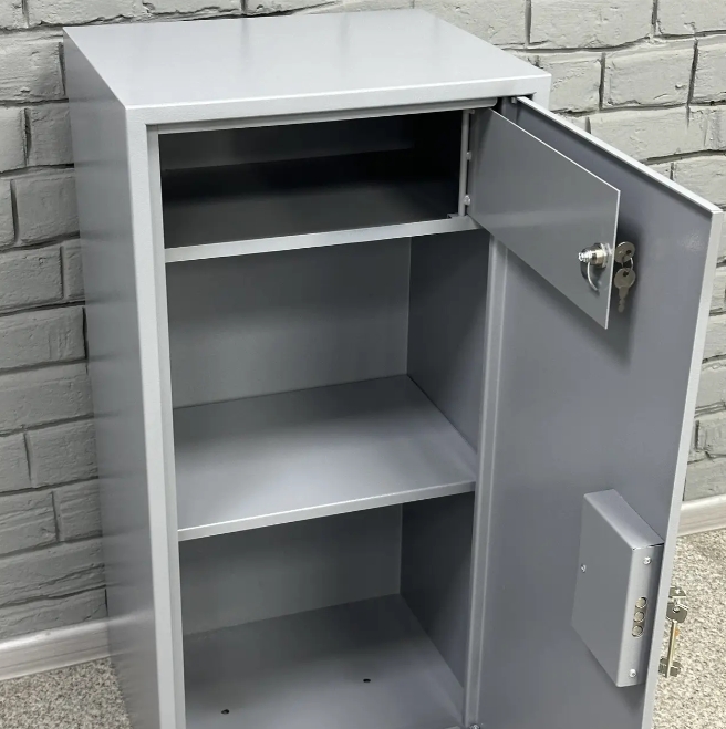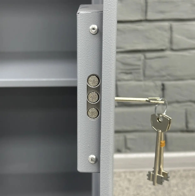 Надійний ключовий замок сувальдного типу з 3 ригелями діаметром 10 мм (горизонтальне відмикання) убезпечить ваші документи чи цінності від сторонніх.