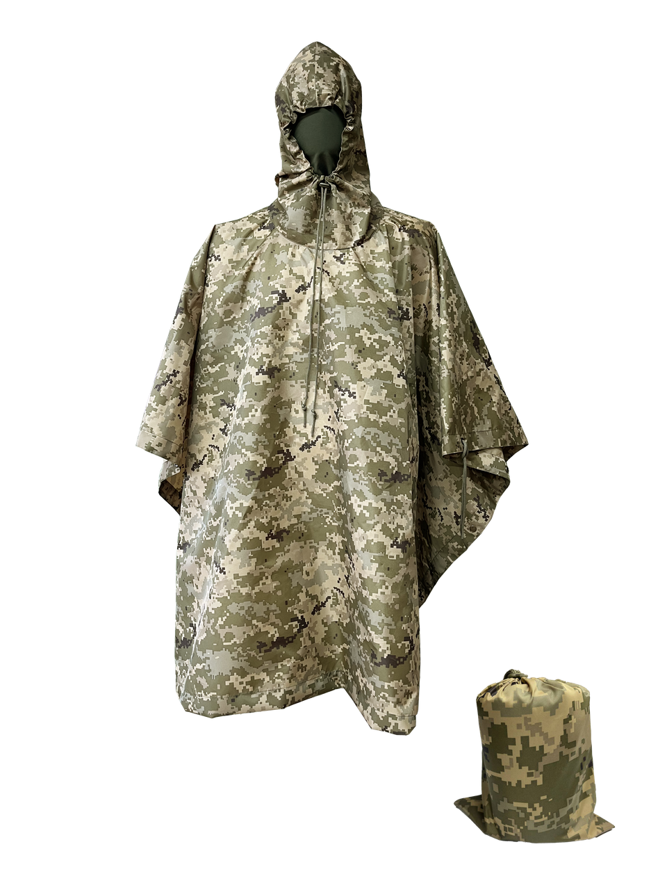Дощовик-пончо «Піксель» — універсальне рішення для виконання військових завдань у польових умовах. Забезпечує базовий захист від опадів та вітру, дозволяє швидко організувати укриття або накрити спорядження без зайвих рухів. У комплекті постачається компресійний мішок для зручного транспортування.