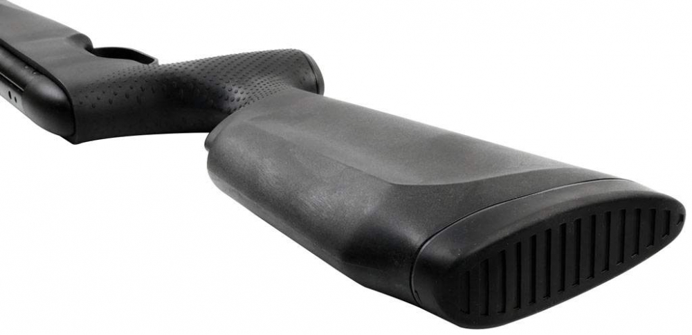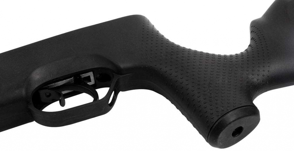 Ложа і цівка виготовлені з якісного синтетичного матеріалу, який більш стійкий, ніж дерево, до кліматичних умов, до яких він нечутливий, але при цьому за ним легко доглядати. Приклад має зручну й ергономічну нековзну рукоять. Куполоподібна і досить висока щока забезпечує хорошу підтримку, а гумовий потиличник допомагає забезпечити стабільне і повторюване утримання.